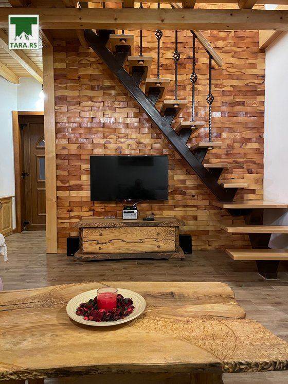 Hidden in the middle of National Park Tara, cozy cabin with a private SPA (sauna, salt room and outdoor hot tub). Cabin has two bedrooms equipped with kingsize beds which can be separated according to your preferences. Fully equipped kitchen with Nespresso machine, Tara mountain tea, and mini bar with Serbia's finest wines and beverages. Cable tv, fast WiFi, gramophone with unique selection of timeless vinyls, central and floor heating are just some of magical details that will welcome you here!