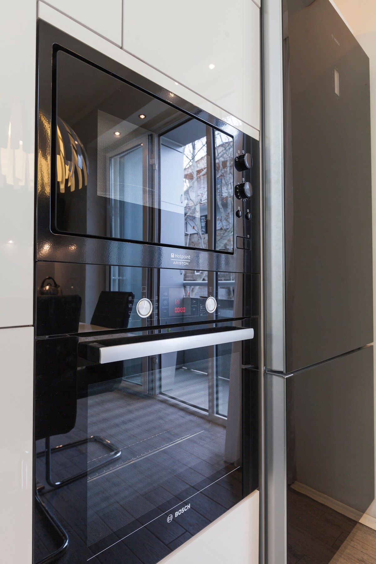 Modern studio with a sit out balcony facing main street in the vibrant and posh area of shops and restaurants is ideal for business travelers. It offers the comfort of quality hotel, excellent location, 24h check-in, concierge service. It has Wi-Fi, cable TV, laptop friendly work space, air conditioner, washing machine, coffee machine, all bathroom and kitchen essentials, hangers, iron, hair dryer, bathrobe and slippers. English-speaking host is always available to help you.