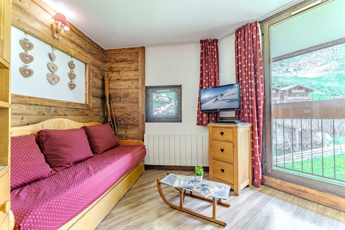 Διαμέρισμα στο VAL THORENS, άνετο, με νότιο προσανατολισμό. Βρίσκεται στην καρδιά του θέρετρου με άμεση πρόσβαση στις πλαγιές (ski-in ski-out), στους πρόποδες των καταστημάτων και απέναντι από το εμπορικό κέντρο (εστιατόρια, σκι πάσο, πισίνα, ενοικίαση εξοπλισμού σκι...). Το κατάλυμα αποτελείται από έναν καναπέ-κρεβάτι για 2 ενήλικες και ένα υπνοδωμάτιο με κουκέτες. Η κουζίνα είναι πολύ καλά εξοπλισμένη (φούρνος, φούρνος μικροκυμάτων Nespresso...) Κατά την άφιξη απαιτείται εγγύηση 400 € (επιταγή/μετρητά).