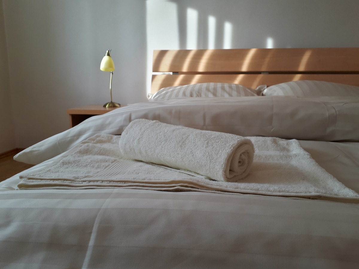 Όμορφο διαμέρισμα κοντά στο κέντρο της πόλης (10 λεπτά με τα πόδια) με 3 μπαλκόνια με πανοραμική θέα στην πόλη και τα γύρω βουνά. Δύο ξεχωριστά υπνοδωμάτια με διπλά κρεβάτια, άφθονος αποθηκευτικός χώρος. Ήσυχο και ήσυχο, κοντά στη φύση, αλλά και μόνο 10 λεπτά με τα πόδια από το κέντρο της πόλης, 15 λεπτά είναι η πλατεία SNP, 7 λεπτά είναι το Terminal Shopping και ο σταθμός λεωφορείων/τρένων. Παντοπωλείο μόνο 100 μέτρα. Διατίθεται χώρος πάρκινγκ δίπλα στο κτίριο με 3 €/ημέρα. Μόνο 200 μέτρα από το Airbnb σας υπάρχει επίσης δωρεάν χώρος στάθμευσης