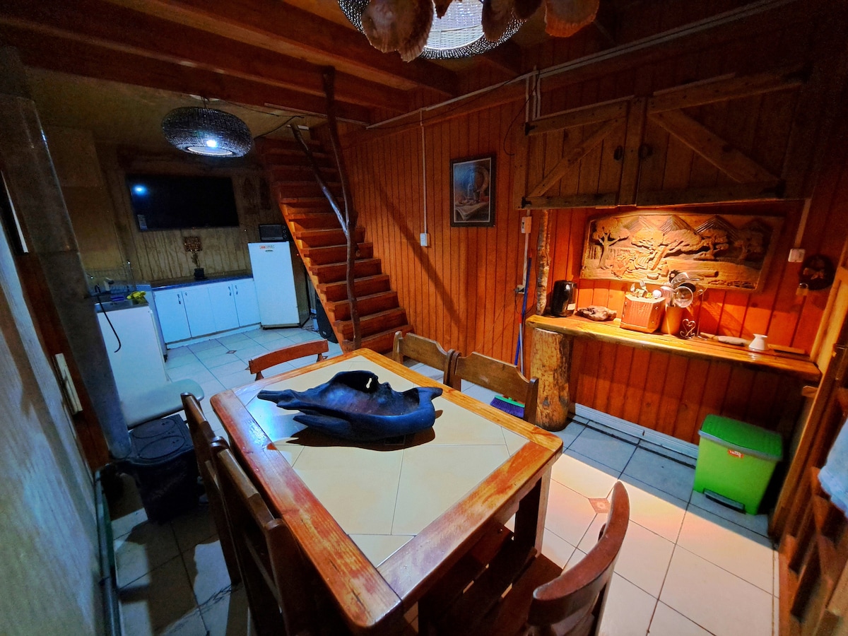 Ενοικιαζόμενο εξοχικό σπίτι με πρόσβαση στον ποταμό Calle Calle, έχει κοινόχρηστη αποβάθρα με τους επισκέπτες του κεντρικού σπιτιού. Το εξοχικό σπίτι απέχει 15 χιλιόμετρα από τη Valdivia στον τομέα Huellelhue (15 έως 20 λεπτά με το αυτοκίνητο). Η καμπίνα διαθέτει θέρμανση από ξύλο (αργό καύσιμο). Υπάρχει επίσης η δυνατότητα χρήσης διπλού καγιάκ.