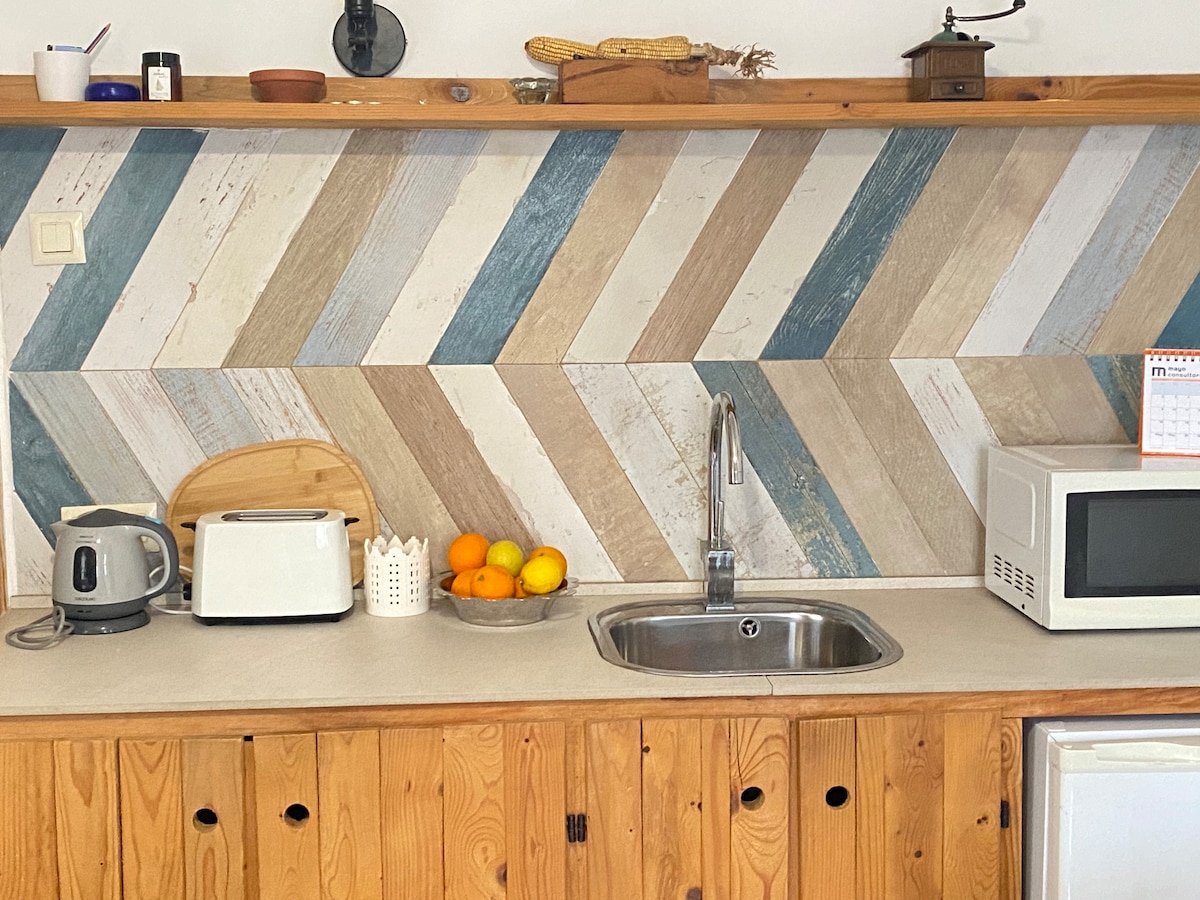 Είναι ένα πολύ άνετο ανεξάρτητο στούντιο, αγροτικού στυλ, κοντά στη θάλασσα και με όλες τις παροχές. Ιδιωτική είσοδος με μπάνιο, υπνοδωμάτιο (ζεστό/κρύο αέρα) και σαλόνι (ψυγείο, φούρνο μικροκυμάτων και καφετιέρα). Εξωτερικός χώρος με χώρο στάθμευσης, βεράντα, κήπο και μπάρμπεκιου. Στο αγρόκτημα υπάρχουν 3 φιλικές γάτες και ένας μικρός βιολογικός οπωρώνας. Βρίσκεται 50 μέτρα από τη θάλασσα, δίπλα στον παραλιακό δρόμο του θαλάσσιου καταφυγίου, ένα μέρος με πολλή γοητεία και ησυχία.