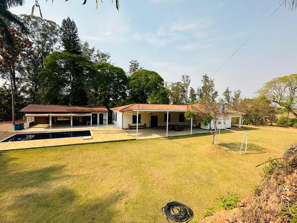 Αγρόκτημα με έκταση 5.000 μέτρων, πολύ ευρύχωρο κυρίως σπίτι με 3 υπνοδωμάτια και 2 μπάνια. Βοηθητικό σπίτι με ένα επιπλέον υπνοδωμάτιο και μπάνιο. WIFI σε όλο το ακίνητο. Μεγάλη αίθουσα εκδηλώσεων με ψησταριά, ψυγείο, καταψύκτη και φούρνο και δύο επιπλέον μπάνια. Πισίνα με ρηχότερη περιοχή για παιδιά και βαθύτερη για ενήλικες. Οικόπεδο με οπωρώνα και χώρο στάθμευσης. Μπορεί να φιλοξενήσει περίπου 50 άτομα για να περάσουν την ημέρα και 20 άτομα για ύπνο. Απαγορεύεται η αναπαραγωγή ήχου μετά τις 22:00!