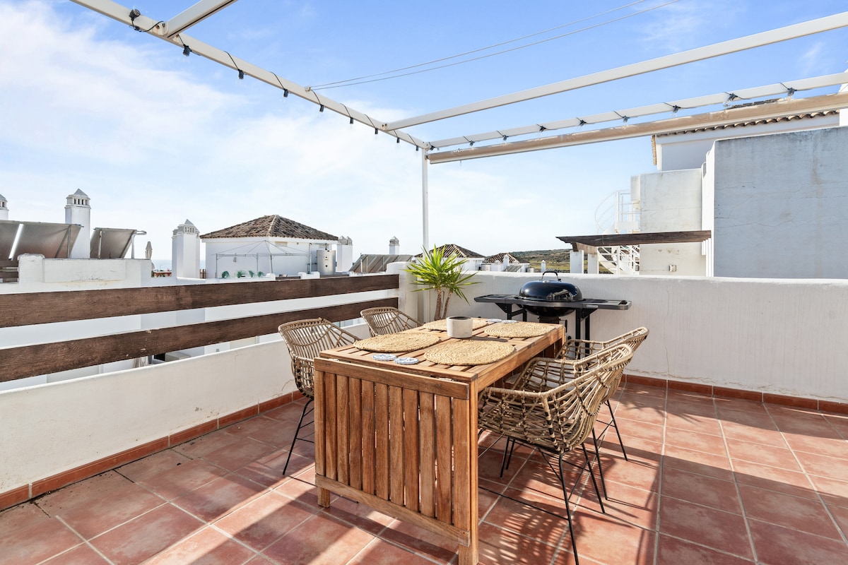 Πολυτελές ρετιρέ σε δύο επίπεδα με δύο βεράντες και ιδιωτική ταράτσα με θέα στη θάλασσα, το βουνό και το γήπεδο γκολφ της Valle Romano. Δύο υπνοδωμάτια, δύο μπάνια, φωτεινός χώρος καθιστικού και πλήρως εξοπλισμένη κουζίνα. Απολαύστε όλη την ημέρα ήλιο, γρήγορο WiFi, πρόσβαση στην πισίνα και γρήγορες συνδέσεις με την Estepona, τη Marbella και τις παραλίες. Ιδανικό για οικογένειες, ζευγάρια, παίκτες γκολφ, εξ αποστάσεως εργαζόμενους και διαμονές μεγαλύτερης διάρκειας.