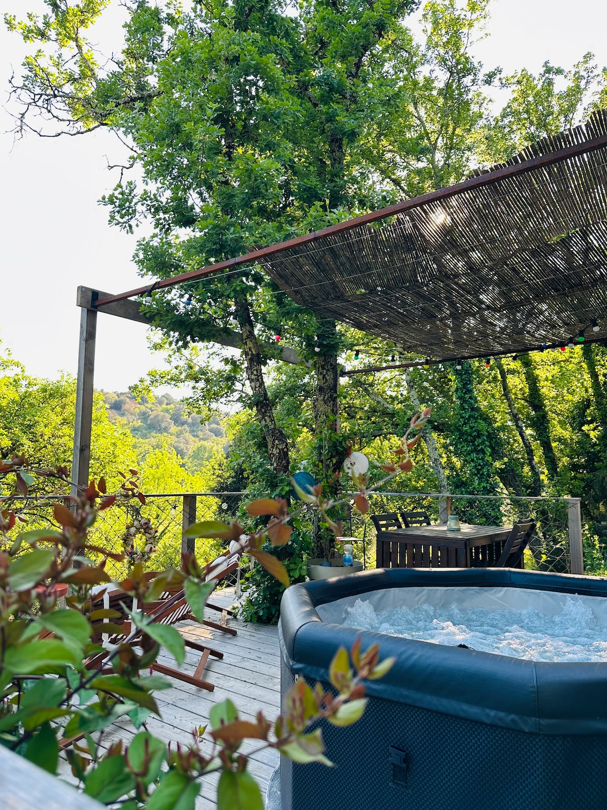 "La géode perchée" Επίσης στο Google. Συνδεθείτε με τη φύση για μια ασυνήθιστη διαμονή στο όμορφο γεώδές μας που βρίσκεται σε μια μεγάλη ξύλινη βεράντα 3 μέτρα από το έδαφος στη μέση των δέντρων στη νότια Αρντέτς, 3 χιλιόμετρα από το κέντρο του Les Vans - Απολαμβάνετε το τζακούζι σας όποτε θέλετε, με θέα τους αμπελώνες και το μακρινό βουνό! - Παρέχονται ελαφριά ταξίδια, κλινοσκεπάσματα και πετσέτες. - Το πρωινό 10 €/άτομο/ημέρα θα καταβάλλεται επιτόπου, ΔΩΡΕΆΝ αν η διαμονή έχει γίνει μέσω google ή LBC Τα λέμε σύντομα " Christian