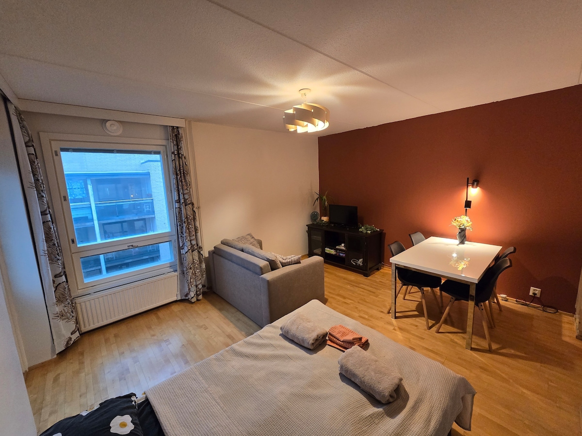 Πολυτελές διαμέρισμα στον τελευταίο όροφο με σάουνα, δίπλα στον σιδηροδρομικό σταθμό Tikkurila (κέντρο Vantaa) και σε μικρή απόσταση από το αεροδρόμιο. Υπάρχουν πολλά εστιατόρια στο ισόγειο του κτιρίου και σε μικρή απόσταση με τα πόδια (100 μέτρα) βρίσκεται το εμπορικό κέντρο Dixi όπου μπορείτε να βρείτε παντοπωλεία και πολλά άλλα μέρη για φαγητό. Το υπνοδωμάτιο έχει δύο ξεχωριστά κρεβάτια και ο καναπές στο σαλόνι είναι εύκολο να μετατραπεί σε διπλό κρεβάτι. Καθαρά σεντόνια, πετσέτες, WiFi και πάρκινγκ περιλαμβάνονται στην τιμή