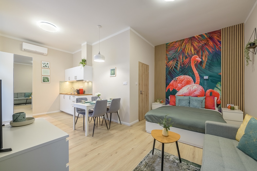 Αυτό το κομψό διαμέρισμα είναι ένα όνειρο που γίνεται πραγματικότητα στην πλευρά της Πέστης του Δούναβη. Είναι κοντά στο ποτάμι και στη Νήσο Margaret, έχει εξαιρετική πρόσβαση σε αξιοθέατα τόσο στην Πέστη όσο και στην Μπούδα και είναι ένα εξαιρετικό παράδειγμα στιλ και άνεσης. Έχει ανακαινιστεί πλήρως σε υψηλό επίπεδο και με ξεχωριστό υπνοδωμάτιο και ευρύχωρο σαλόνι, μπορεί να φιλοξενήσει άνετα έως και τέσσερα άτομα, γεγονός που το καθιστά ιδανική επιλογή για ζευγάρια και μικρές και στενές παρέες φίλων.