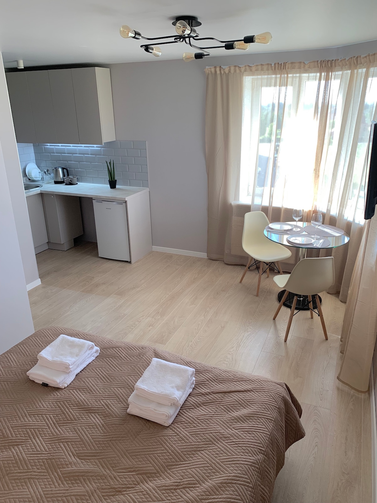 Hi there! My name is Julia and I am excited to welcome you at my brand-new designer apartments (32 sqm) in Kiev. I am pleased to share with you this stylish contemporary apartment features an open-concept layout, wood surfaces, and tasteful decor. Here you can find everything you might need for your stay - high quality bed linen, hairdryer, iron, bath accessories and more. Feel free to start your day with a cup of a lovely coffee or tea of your choice as a compliment for your stay. Welcome home!