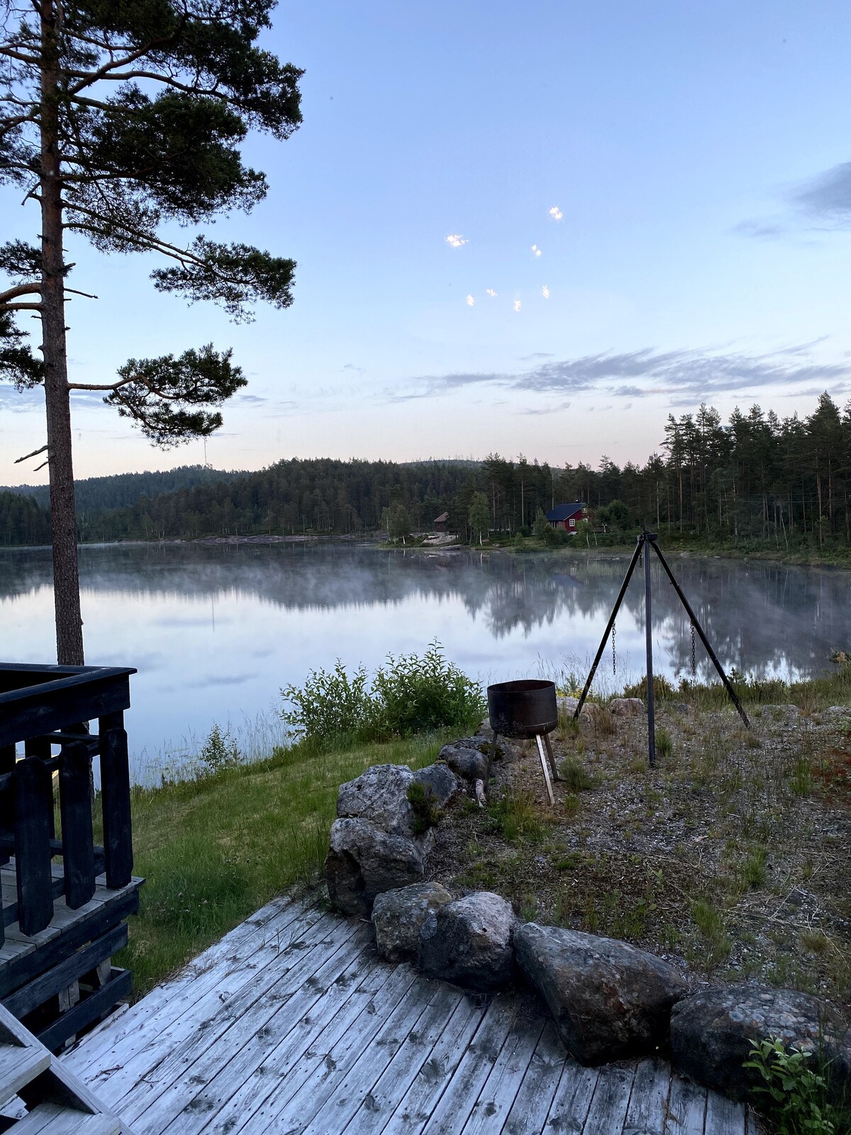 Eksklusiv tretopphytte usjenert i vakker natur. Kun 15 kilometer fra Kristiansand sentrum. Her kan du sitte og lytte til naturen og når kvelden kommer er det kun månen og stjernene som lyser opp for deg! Få kontakt med naturen igjenpå dette uforglemmelige overnattingsstedet. Hytta ligger helt ved vannet, det følger to kanoer med og det er også en solid robåt. Badstuen som ligger ved brygga kan bestilles om ønskelig. Fri parkering ca 150 meter fra hytta. Fin fisk i vannet, trenger ikke fiskekort.