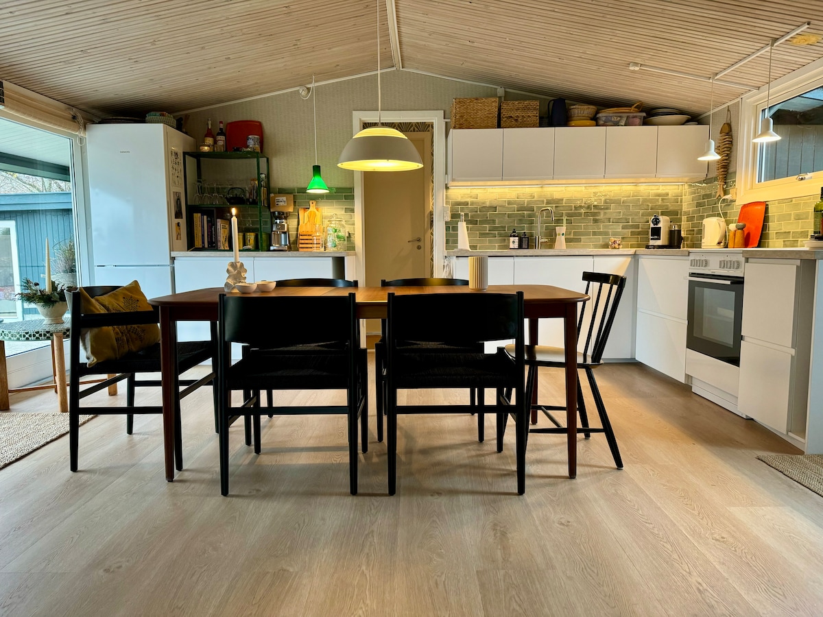 Περιηγηθείτε μέσα από το δάσος στην παραλία, απολαύστε το άνετο εξοχικό μας εμπνευσμένο από το japandi, ιδανικό για χαλάρωση και επανασύνδεση. Ένας συνδυασμός από ζεστή ξύλινη επένδυση, μεγάλα παράθυρα, έναν ευρύχωρο κήπο και μια ξυλόσομπα. Άνετη, καλά εξοπλισμένη κουζίνα, ενιαίος χώρος καθιστικού και τρία υπνοδωμάτια, είναι ένας ιδανικός χώρος για χαλαρά πρωινά, βόλτες στην παραλία και εξερεύνηση της όμορφης βόρειας ακτής της Δανίας.