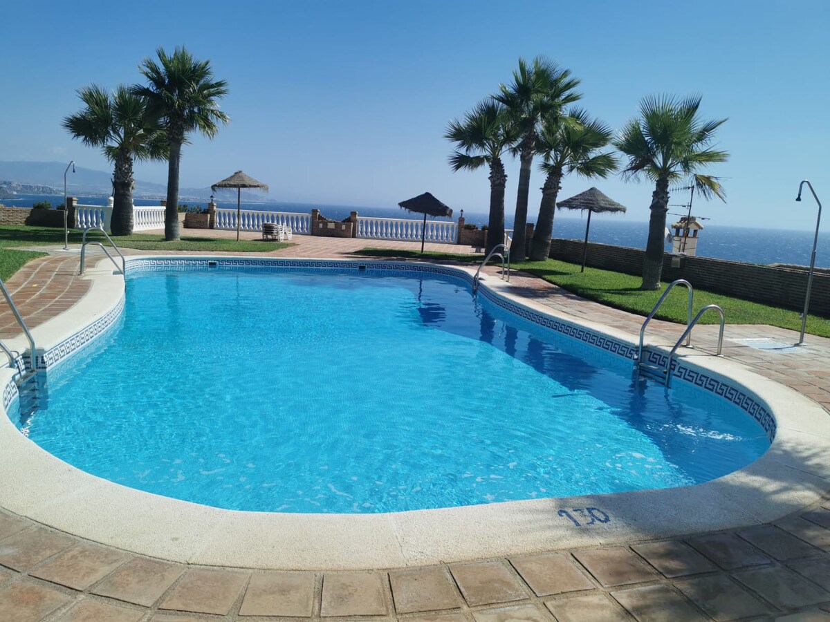 Ζήστε την απόλυτη παραθαλάσσια απόδραση σε αυτήν τη φωτεινή βίλα ανδαλουσιανού στιλ, όπου κάθε δωμάτιο είναι ένα παράθυρο στη μαγευτική θέα 180º της Μεσογείου. Απολαύστε τον ήλιο όλη μέρα! Το σπίτι 3 υπνοδωματίων διαθέτει ιδιωτική πισίνα με θαλασσινό νερό και προαιρετική θέρμανση και βεράντες με θέα τριγύρω. Απολαύστε την πλήρως εξοπλισμένη κουζίνα, το φωτεινό σαλόνι και τα κομψά έπιπλα. Διαθέσιμα γκαράζ και wifi. Απολαύστε αυτήν την παραθαλάσσια Airbnb όλο τον χρόνο!