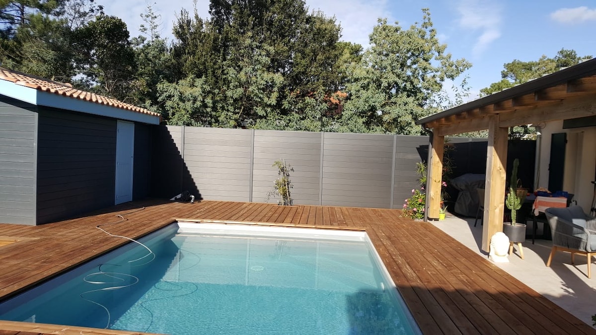 Ανεξάρτητη διαμονή του κύριου σπιτιού που βρίσκεται 10 λεπτά με τα πόδια από τις παραλίες και το κέντρο του Montalivet les Bains. Απολαύστε έναν ιδιωτικό χώρο που περιλαμβάνει: - 1 υπνοδωμάτιο με κρεβάτι 160 εκατοστών, - ιδιωτικό σαλόνι με καναπέ και τηλεόραση, - ένα ανεξάρτητο μπάνιο εξοπλισμένο με καμπίνα ντους, διπλό νιπτήρα, - ανεξάρτητες τουαλέτες, - μια σκεπαστή και εξοπλισμένη εξωτερική κουζίνα, - πρόσβαση σε κοινόχρηστους εξωτερικούς χώρους: κλειστός και διαμορφωμένος κήπος, εξωτερικό ντους, ξαπλώστρες, πισίνα.
