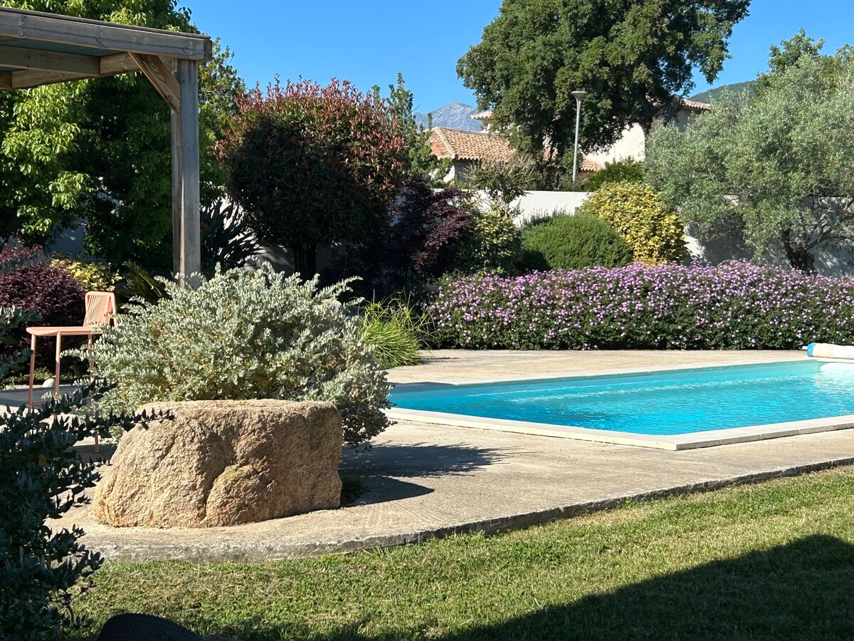 Αυτή η κομψή βίλα με υπέροχη θέα στη θάλασσα είναι ιδανική για μια επιτυχημένη διαμονή . Θα χαλαρώσετε δίπλα στη θερμαινόμενη μεγάλη πισίνα. Θα γευματίσετε στην ηλιόλουστη βεράντα του και θα απολαύσετε φιλικά απεριτίφ δίπλα στην πισίνα στο αρκετά καλυμμένο σπίτι της πισίνας. Με όλες τις απαραίτητες ανέσεις και μια μεγάλη εσωτερική κουζίνα, η βίλα είναι ένα ιδανικό μέρος για να πάτε στις παραλίες (5 μ.) ή για όμορφη πεζοπορία στα βουνά "aiguille de Bavella".