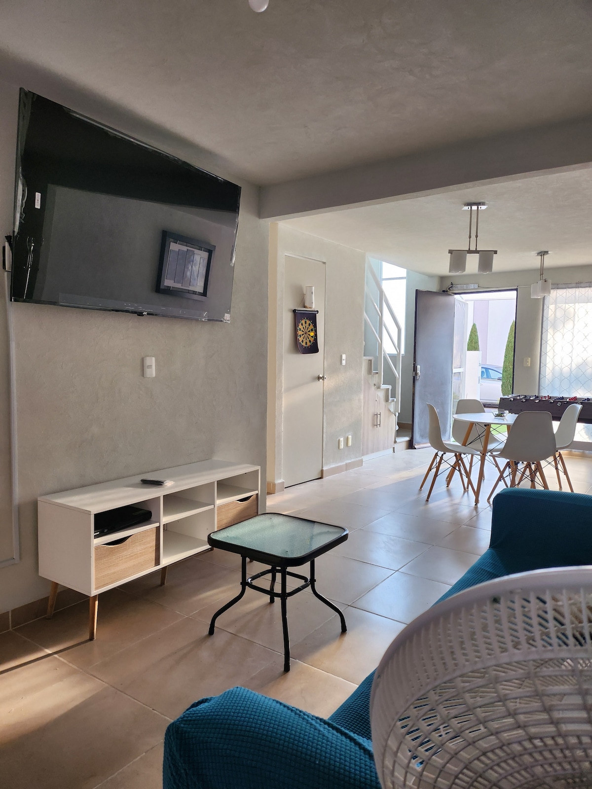 Relájate con tu familia, pareja o amigos en un casa bonita en Veracruz, en un fraccionamiento familiar y tranquilo con alberca en áreas comunes. La casa cuenta con 2 habitaciones con cama matrimonial, una sala de tele con sofá cama, sala, comedor y cocina integral con todos los accesorios para cocinar. Cuenta con un baño y medio y un patio en la parte trasera con mesa y sombrilla. Cuenta con un lugar de estacionamiento. Se encuentra muy cerca del aeropuerto y 15 minutos de Boca del Río en carro.
