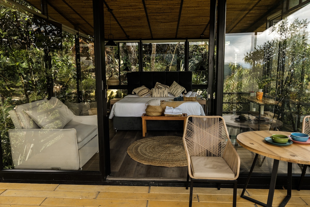 Conéctate con la naturaleza en esta escapada inolvidable muy cerca de Bogotá en San Francisco, Cund. Una cabaña exclusiva diseñada y atendida por sus dueños. Nuestra cabaña está equipada con cama King, baño privado integrado a la habitación con ducha caliente, cocineta con minibar, malla catamaran, zona de hamaca, 2 tinas en la terraza, zona de fogata y espacio de contemplación junto al río. El precio incluye desayuno RNT 99238