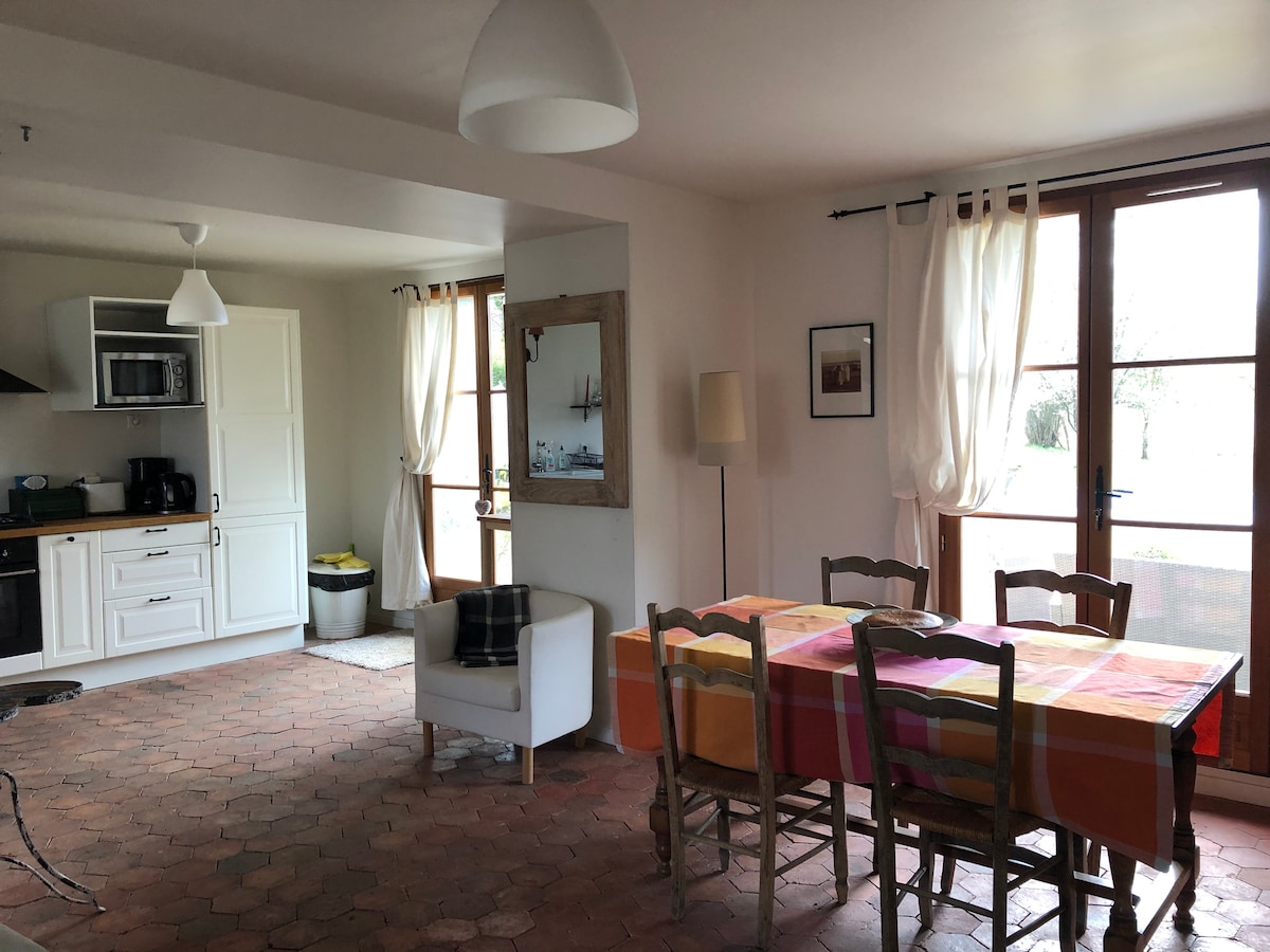 Καλημέρα Μικρό μονοκατοικία 60 τ.μ. (πρώην καπνιστήριο) του 1780 πλήρως ανακαινισμένο 25 χλμ. από το Sens για 4 άτομα με έναν όροφο Ισόγειο, σαλόνι, πλήρως εξοπλισμένη κουζίνα (καφετιέρα Nespresso, καφές, τσάι, πιάτα, καναπές-κρεβάτι, πλυντήριο ρούχων, δορυφορική τηλεόραση, WiFi Στον επάνω όροφο υπάρχει μπάνιο με ντους και τουαλέτα, νέο κρεβάτι 160Χ200 Το σπίτι βρίσκεται σε ένα μικρό χωριό στην ύπαιθρο 2 ποδήλατα Vtt διαθέσιμα για βόλτα Ευχαριστούμε και θα τα πούμε σύντομα Ακίμ