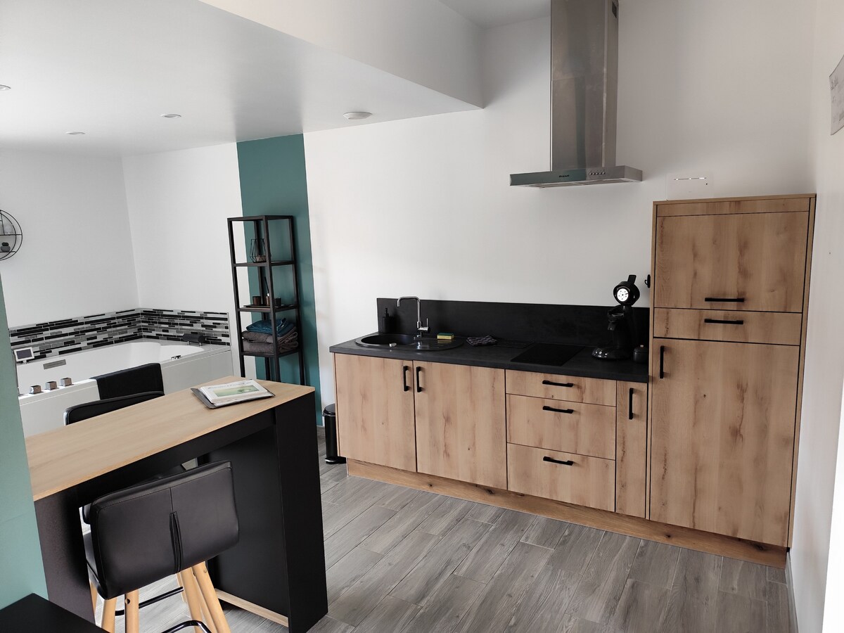 "Η φωλιά των ερωτευμένων" είναι το ιδανικό μέρος για ζευγάρια που αναζητούν χαλάρωση και ηρεμία. Αυτό το σπίτι των 70m2 πλήρως ανακαινισμένο έχει διαμορφωθεί και διακοσμηθεί με φυσικά χρώματα και υλικά από έναν εθισμένο στη διακόσμηση. Αυτό το άνετο κουκούλι είναι το ιδανικό μέρος για να συναντηθείτε και να περάσετε μια υπέροχη στιγμή ως ζευγάρι. Τα + : τζακούζι, αίθουσα μασάζ, βιντεοπροβολέας με home cinema Όμορφες παροχές, προσεγμένη διακόσμηση και όμορφα υλικά όπως το κερωμένο σκυρόδεμα, το λινό, το βιολογικό βαμβάκι..