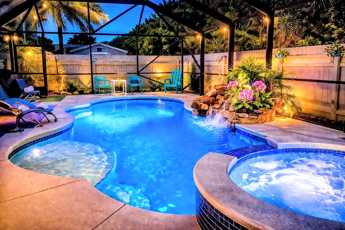 Απολαύστε χαλαρωτικές και ιδιωτικές διακοπές για όλη την οικογένεια σε ένα πρόσφατα ανακαινισμένο και ανοιχτό σπίτι με 3 υπνοδωμάτια και 2 μπάνια. Ιδιωτική περιφραγμένη πισίνα και ξεχωριστό τζακούζι, περιφραγμένο στην πίσω αυλή. Κεντρικό σαλόνι/ τραπεζαρία με μεγάλη τηλεόραση 60'. Εξωτερικός χώρος καθιστικού/ φαγητού στη βεράντα. PacMan, PingPong και παιχνίδια. Περπατήστε σε εντυπωσιακά πάρκα και μονοπάτια. Δέκα λεπτά με το αυτοκίνητο για μίλια από παρθένες παραλίες και αξιοθέατα της Ακτής των Θησαυρών. Η κεντρική τοποθεσία διευκολύνει την πρόσβαση στην υπόλοιπη Φλόριντα.