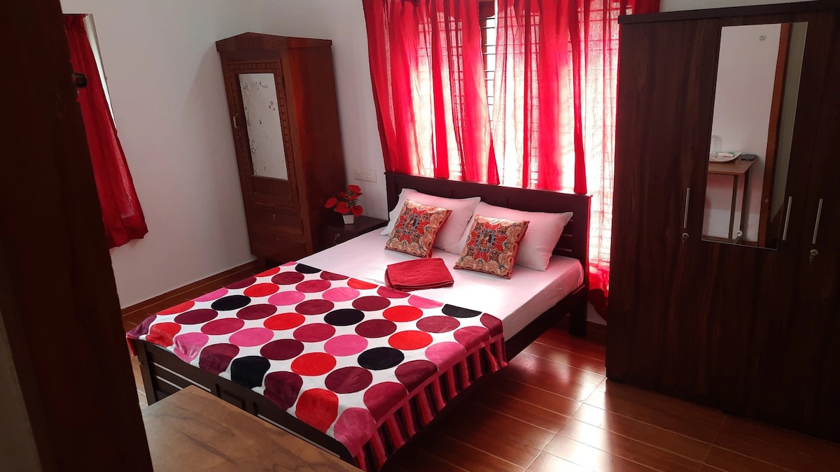 Μείνετε σε ένα γοητευτικό 1BHK σε στιλ Κεράλα, μόλις λίγα λεπτά από την παραλία Varkala. Ιδανικό για ζευγάρια ή μικρές οικογένειες, αυτό το άνετο σπίτι προσφέρει ιδιωτικότητα, άνεση και μια πινελιά παράδοσης. Απολαύστε ένα ευρύχωρο υπνοδωμάτιο, σαλόνι και τη δική σας κουζίνα για να μαγειρέψετε φρέσκα γεύματα. Περιτριγυρισμένο από πράσινο, είναι ήσυχο αλλά κοντά στην παραλία, σε καφέ και καταστήματα. Ιδανικό για όσους θέλουν μια χαλαρή απόδραση δίπλα στη θάλασσα με τις ανέσεις ενός σπιτιού.
