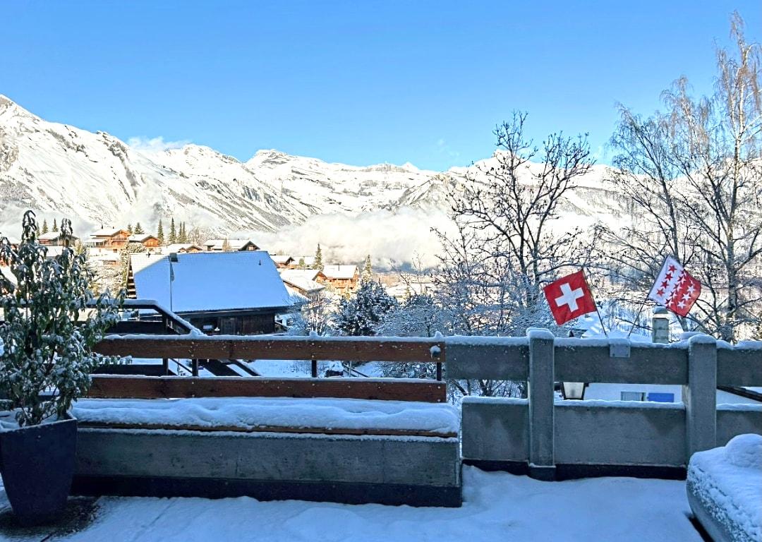 Πολυτελές και πολύ ευρύχωρο διαμέρισμα 3½ τεμαχίων (150 τ.μ.) έως 5 άτομα το πολύ, πολύ ήσυχη τοποθεσία, στο ισόγειο ενός τυπικού ελβετικού σαλέ. Στην πρώτη γραμμή που βλέπει στα βουνά, εκπληκτική θέα στις Άλπεις με μαγευτικά ηλιοβασιλέματα. Βρίσκεται λίγο μακριά από το ταραγμένο και θορυβώδες θέρετρο, αλλά παραμένει εύκολα προσβάσιμο σε ένα λεπτό με το αυτοκίνητο ή 500 μέτρα με τα πόδια από το δωρεάν λεωφορείο του σκι. Εύκολη πρόσβαση, δωρεάν γκαράζ. Εκπαιδευτές σκι του σπιτιού σε ελκυστικές τιμές