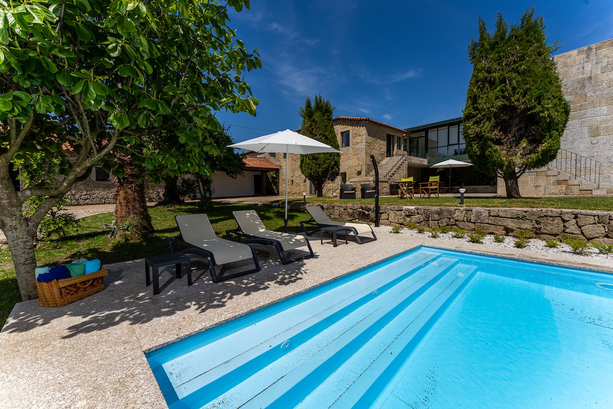 Amonde Village - Σπίτι Α - Χαλαρώστε με την οικογένειά σας σε αυτό το ήσυχο κατάλυμα, μέσα στη φύση. Με μέγιστη ποιότητα και άνεση. 15 λεπτά από το Viana do Castelo, 35 λεπτά από το Πόρτο και 40 λεπτά από το Βίγκο (Ισπανία). Σε ένα οικείο, φιλόξενο και εκπληκτικό περιβάλλον. Δωρεάν πρόσβαση στην πισίνα με θαλασσινό νερό και στο γυμναστήριο. Το τζακούζι είναι αποκλειστικό μας, με 2 ημέρες κράτησης διαθέσιμες για 2 ώρες χρήσης, κατά τη διάρκεια της διαμονής σας, με την άνεση και τη διαθεσιμότητά σας. Απολαύστε...