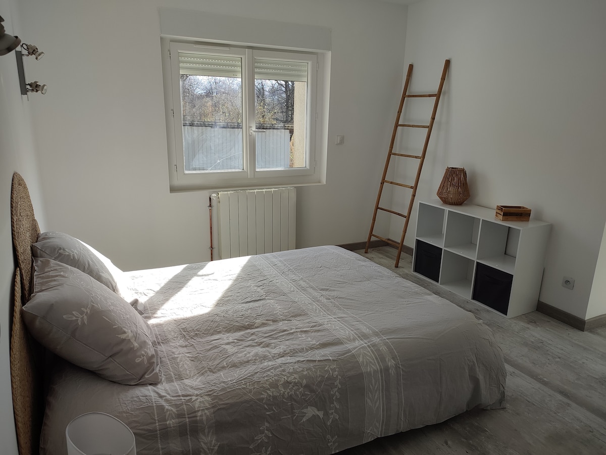 100% ΑΝΕΣΗ 2 ΥΠΝΟΔΩΜΑΤΙΑ, 1 μπάνιο με ντους, WC, 1 ΚΛΙΝΗ με 1 διπλό κρεβάτι στην κύρια κρεβατοκάμαρα. 2 μονά κρεβάτια στο δεύτερο υπνοδωμάτιο ΑΣΥΡΜΑΤΟ INTERNET Θέλετε να ζήσετε την εμπειρία του Castres και των περιχώρων του. Για συνεργασία με συναδέλφους ή για ένα οικογενειακό Σαββατοκύριακο. 100% ΕΥΚΟΛΗ ΠΡΟΣΒΑΣΗ Βρίσκεται 5 λεπτά από το Castres -› Το σπίτι διαθέτει ιδιωτικό χώρο στάθμευσης για έως 4 αυτοκίνητα. Ένα σούπερ μάρκετ Auchan σε απόσταση 5 λεπτών. Το διαμέρισμα βρίσκεται στο ισόγειο με θέα στην ύπαιθρο με ιδιωτική βεράντα. Ήρεμη ++