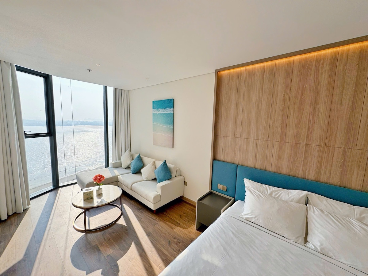 Located next to InterContinental Halong Bay Resort, this 45 SQM fully furnished Studio with breathtaking seaview of Ha Long Bay from the high floor. It's very convenient with full services for relaxing & entertainment & food at exclusive rate for guests staying here and perfectly on the beautiful beach. 🏊♂️Please note that room rate does not include pool, jacuzzi, gym, spa & breakfast which are managed by the 5* à la carte hotel. You can buy tickets at the reception at the resident rate.