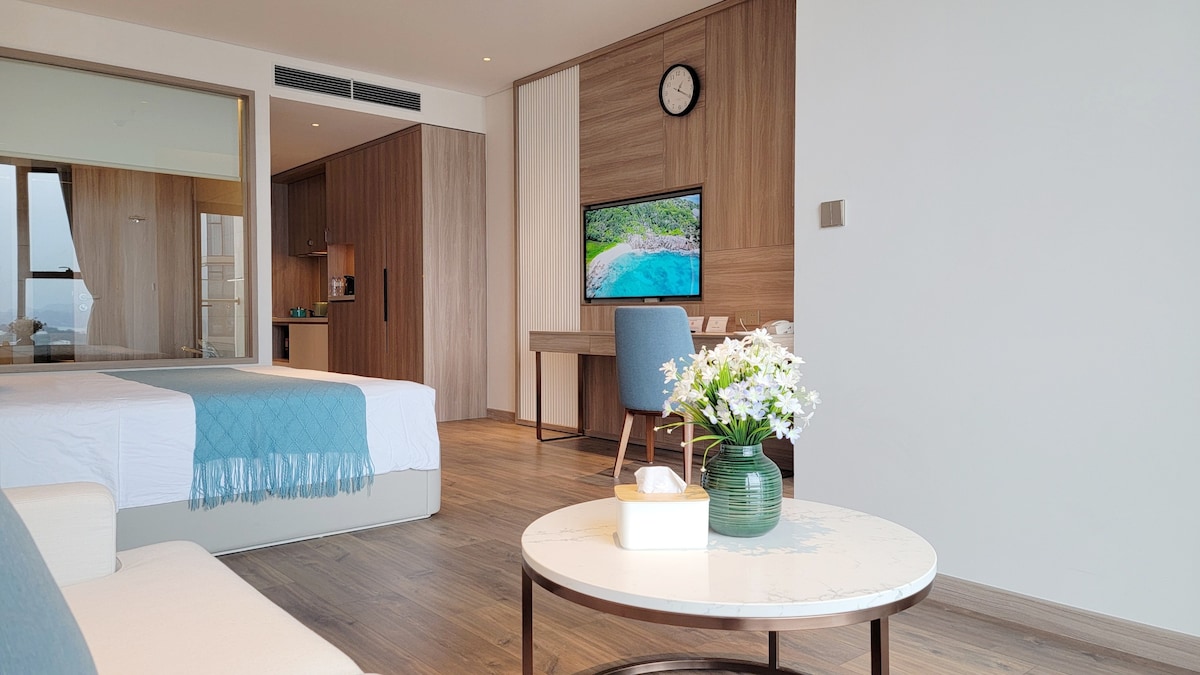 Located next to InterContinental Halong Bay Resort, this 45 SQM fully furnished Studio with breathtaking seaview of Ha Long Bay from the high floor. It's very convenient with full services for relaxing & entertainment & food at exclusive rate for guests staying here and perfectly on the beautiful beach. 🏊♂️Please note that room rate does not include pool, jacuzzi, gym, spa & breakfast which are managed by the 5* à la carte hotel. You can buy tickets at the reception at the resident rate.