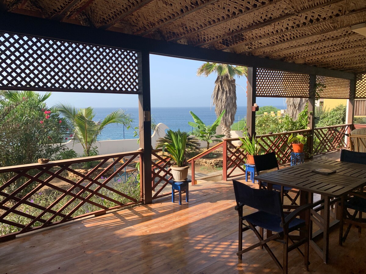 Δημιουργήστε αναμνήσεις σε αυτό το μοναδικό κατάλυμα με υπέροχη θέα στη θάλασσα. Βρίσκεται πολύ κοντά σε καταστήματα και στο κέντρο του χωριού στην περιζήτητη περιοχή της Ponta Preta. Μια μοναδική τροπική ξύλινη αρχιτεκτονική στο Μάιο με μια μεγάλη σκεπαστή βεράντα για να απολαύσετε το πρωινό ή ένα γεύμα με θέα στον ωκεανό. Το σπίτι είναι ευρύχωρο. Αποτελείται από μεγάλο σαλόνι με τηλεόραση, πλήρως εξοπλισμένη αμερικάνικη κουζίνα, 2 υπνοδωμάτια και μπάνιο με ντους.