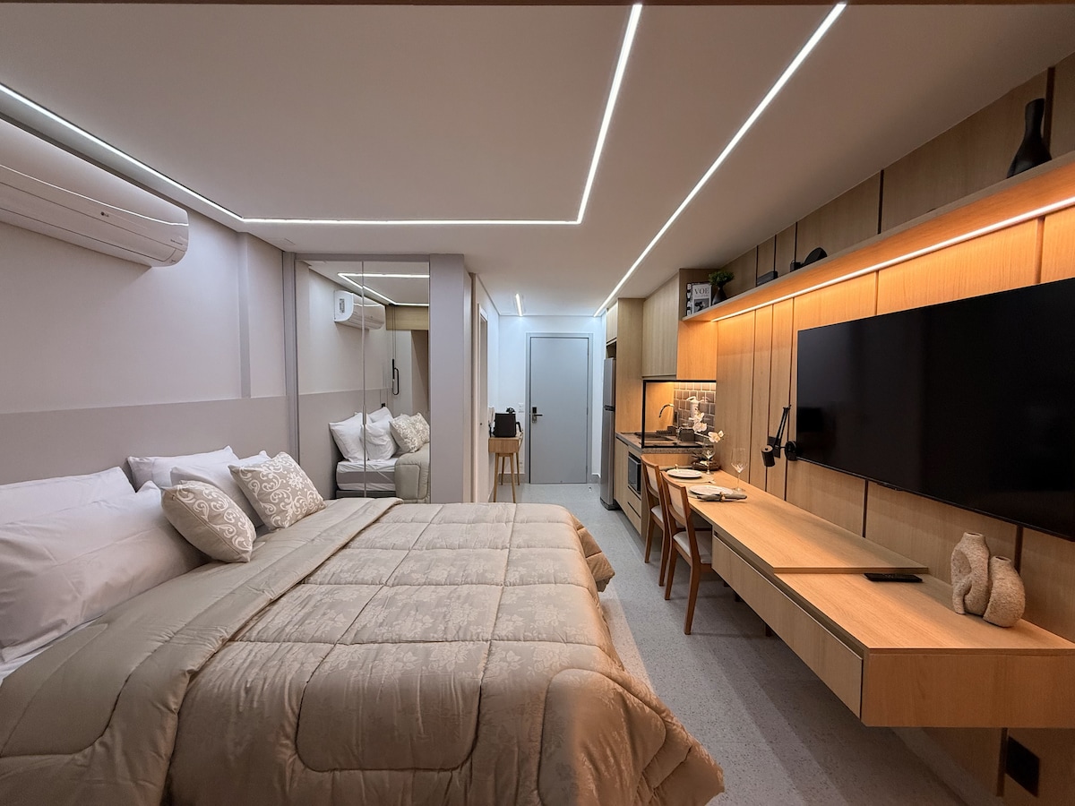 Νέο στούντιο, με σχεδιασμό και αρχιτεκτονική στη Vila Madalena. Το στούντιο βρίσκεται σε έναν εξαιρετικά ήσυχο και δενδρόφυτο δρόμο κοντά στα κύρια μπαρ, το μετρό και τα εστιατόρια της γοητευτικής Vila Madalena. Το στούντιο διαθέτει κλιματισμό, μίνι μπαρ, καφετιέρα Nespresso, στρώμα Emma και όλες τις ανέσεις για μια πολύ ξεχωριστή διαμονή στο Σαν Πάολο. Το κτίριο διαθέτει πλήρως εξοπλισμένο γυμναστήριο, πλυντήριο και πισίνα.