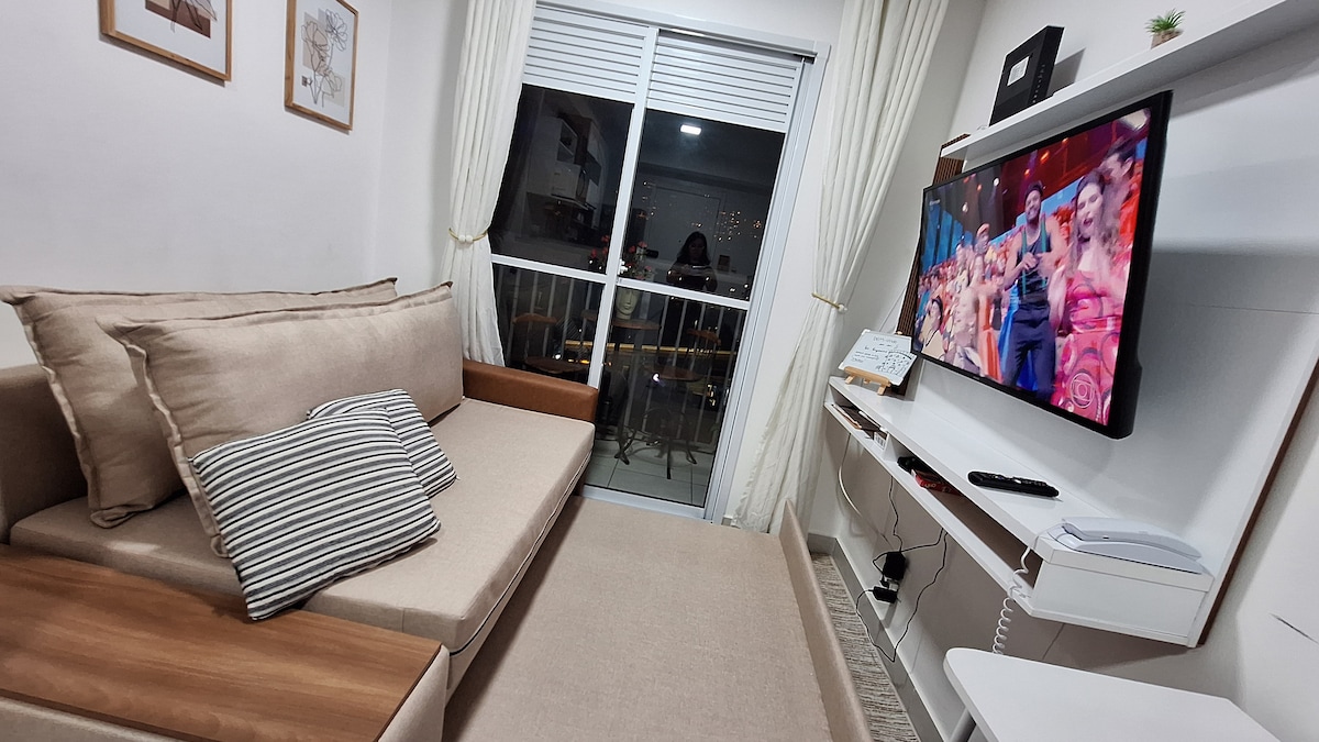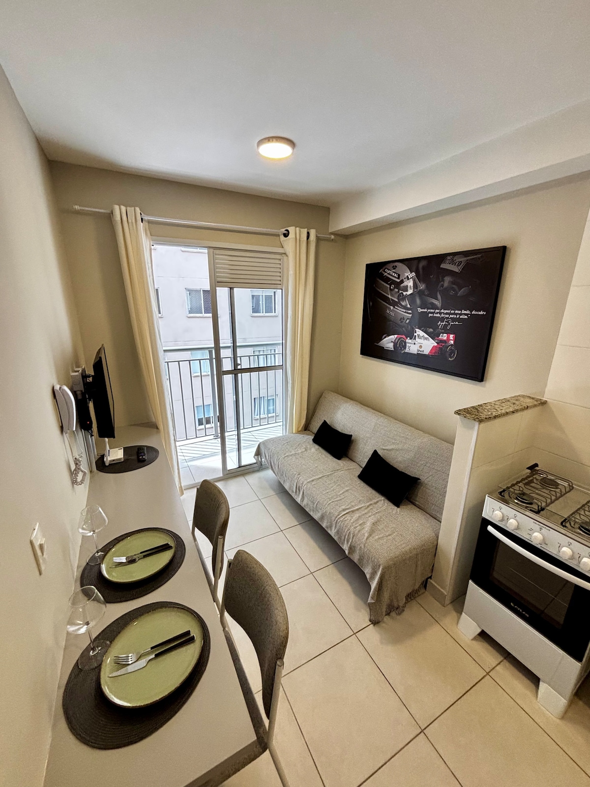 Χαλαρώστε σε ένα ήσυχο και άνετο διαμέρισμα, λίγα βήματα από το Transamérica Expo, το Vibra και το Teatro Arena BTG. Απολαύστε το μπαλκόνι, τον κλιματισμό και τα κλινοσκεπάσματα και τις πετσέτες υψηλής ποιότητας. Ξεκινήστε την ημέρα σας με έναν εσπρέσο και μαγειρέψτε με ευκολία στην εξοπλισμένη κουζίνα. Εύκολη πρόσβαση με μέσα μαζικής μεταφοράς ή αυτοκίνητο, με πάρκινγκ επί πληρωμή. Αποστάσεις: Transamérica Expo 7 λεπτά με τα πόδια Δόνηση 3 λεπτά Tokyo Marine Hall 5 λεπτά με Uber Προξενείο 10 λεπτά Ψώνια Morumbi 12 λεπτά. Aut. Interlagos 20 λεπτά.