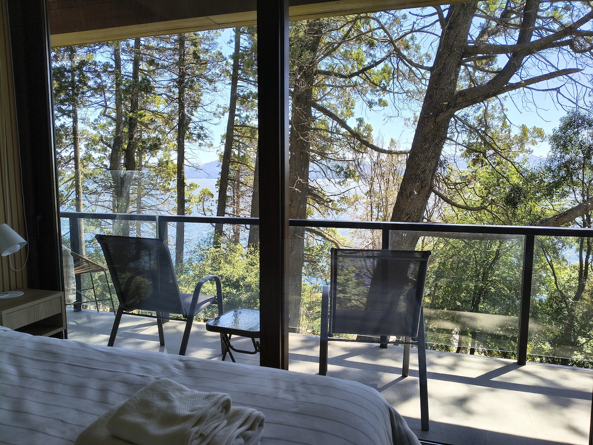 Μονοκατοικία 50 τ.μ. με επιβλητική θέα στη λίμνη και το νησί Βικτόρια στην περιοχή Llao Llao. Διαθέτει μικρό σαλόνι, πλήρως εξοπλισμένη κουζίνα με φούρνο και φούρνο μικροκυμάτων, κρεβάτι king size που βλέπει σε μπαλκόνι-βεράντα. Πλήρες μπάνιο με μπανιέρα Ιδιωτική πρόσβαση στην ακτή της λίμνης Υπηρεσίες Wi-Fi Μπαλκόνι με ξαπλώστρες Κλινοσκεπάσματα και πετσέτες αλλάζονται κάθε 5 ημέρες Στεγνωτήρας μαλλιών Ιδιωτικός χώρος στάθμευσης Αποκλειστικά για ζευγάρια Δεν υπάρχει πρωινό Δεν υπάρχει τηλεόραση Χρέωση τελικού καθαρισμού 20 δολάρια