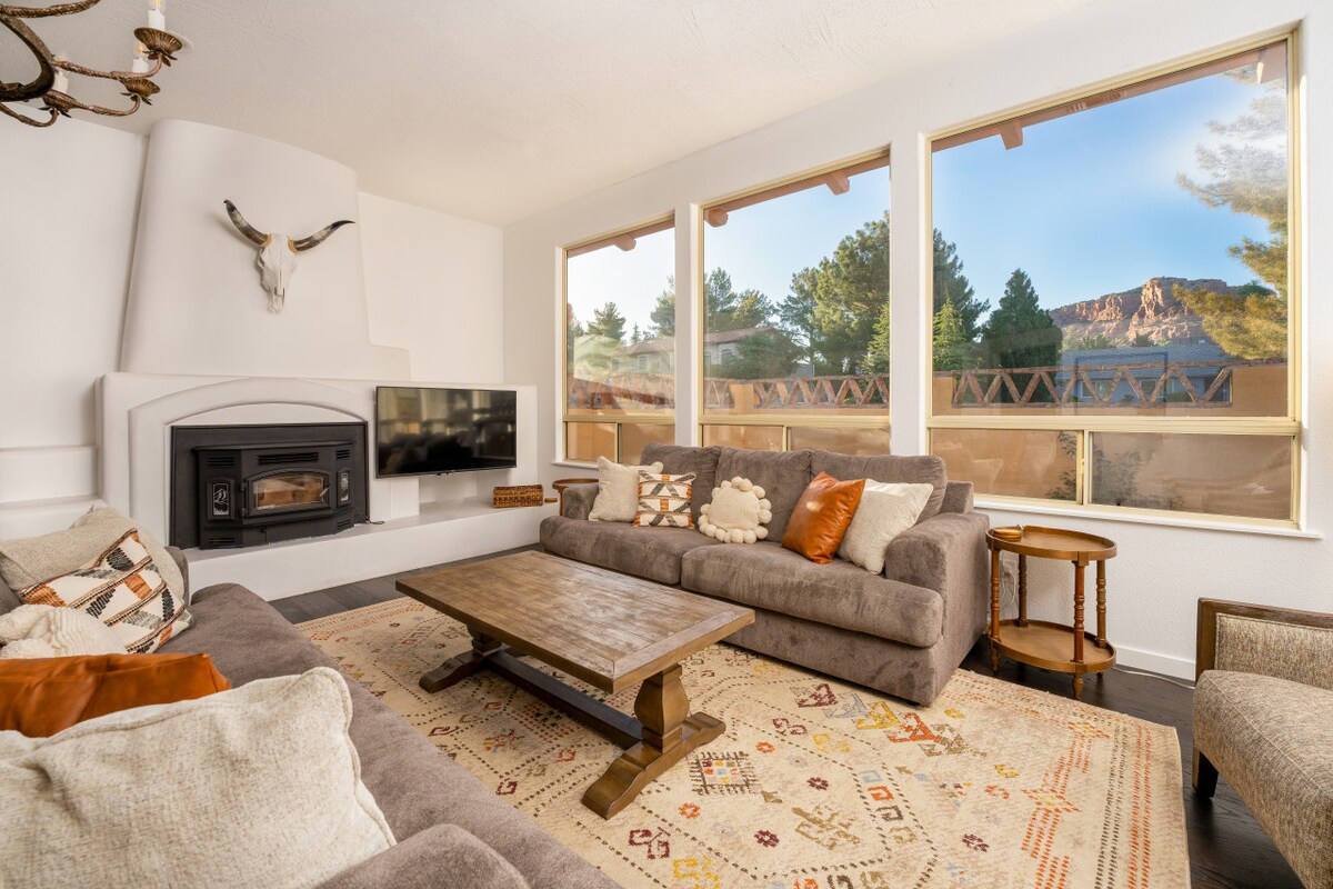 Απολαύστε τη μαγευτική θέα των διάσημων Red Rocks της Σεντόνα από την πολυτελή ιδιωτική σας βίλα. Λίγα βήματα από το εμβληματικό Παρεκκλήσιο του Τιμίου Σταυρού, δημοφιλή μονοπάτια πεζοπορίας. Το σπίτι διαθέτει μοντέρνα αισθητική μεσής δεκαετίας, 1 υπνοδωμάτιο με κρεβάτι king size, 1 καναπέ-κρεβάτι με 2 μπάνια, 2 ευρύχωρα σαλόνια, κουζίνα, γραφείο, υπαίθριο χώρο τραπεζαρίας με μπάρμπεκιου. Μετά από μια μέρα στην έρημο, σε μικρή απόσταση, κατευθυνθείτε στο κέντρο της Σεντόνα, αναζητήστε απίστευτες γκαλερί τέχνης και εξερευνήστε τοπικά εστιατόρια! TPT# 21426328/ 167 τ.μ.