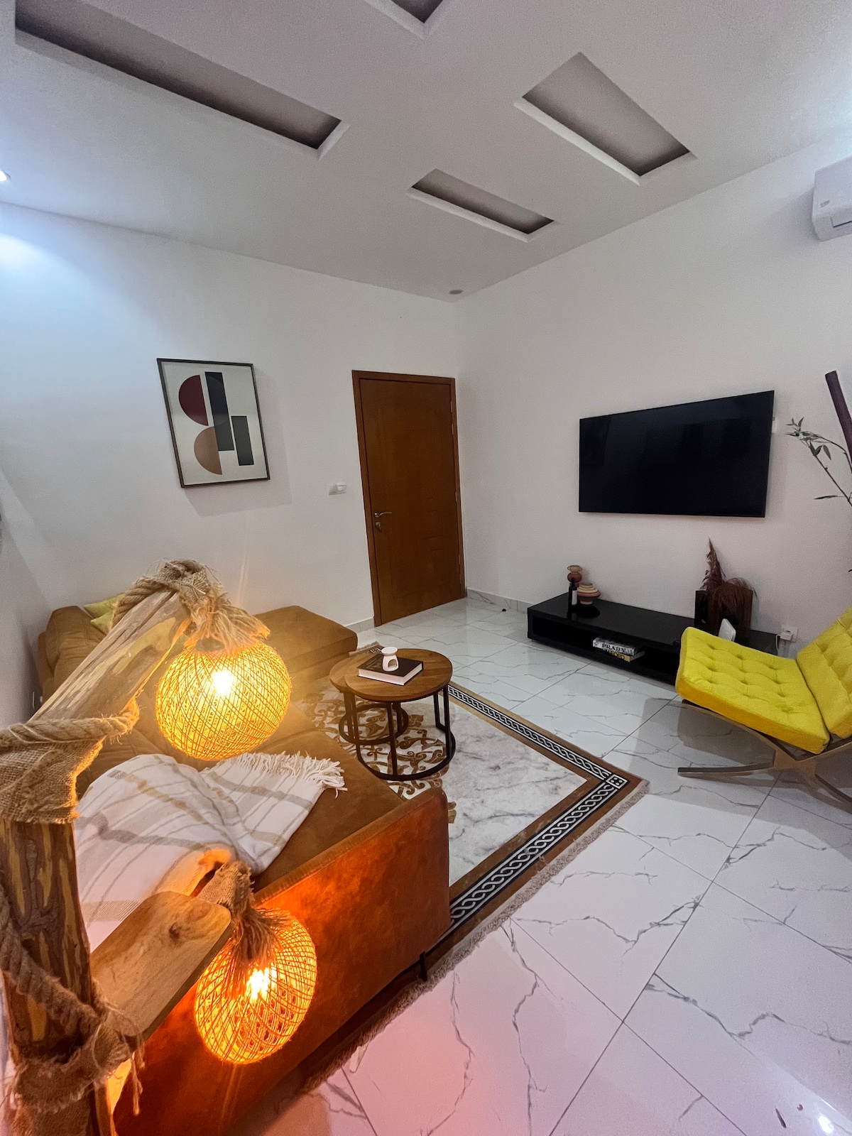 Détendez-vous dans ce logement calme.Profitez de l’élégance, de la modernité et du luxe en séjournant dans cet appartement d’une résidence équipée et super sécurisée. Un lieu qui est magnifiquement décoré et doté d’un ascenseur, d’une piscine accessible et d’un jardin commun pour votre plus grand plaisir. Profitez d’un séjour dans ce somptueux et calme appartement.