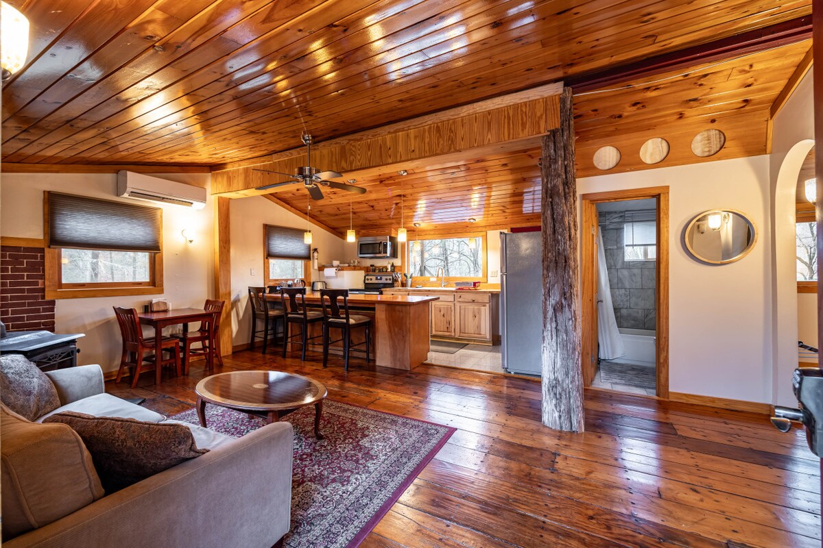 Απολαύστε το ρουστίκ, άνετο, ιστορικό ξυλόσπιτο στο δάσος σε 21 στρέμματα με δύο ρυάκια και ένα μικρό λιβάδι. Τα ξύλα, από το 1800, αναδιαμορφώθηκαν πριν από 17 χρόνια συνδυάζοντας μια πλούσια ιστορία με ίντερνετ υψηλής ταχύτητας και σύγχρονες ανέσεις. Βυθιστείτε στο πλούσιο κρεβάτι με εντελώς οργανικά σεντόνια, κορυφή στρώματος και μαξιλάρια. Κάντε μια βόλτα στον αρχικό δρόμο του τρένου με τα βαγόνια μέχρι ένα ρυάκι ή απολαύστε την υπέροχη θέα του Jump Mountain από το λιβάδι.