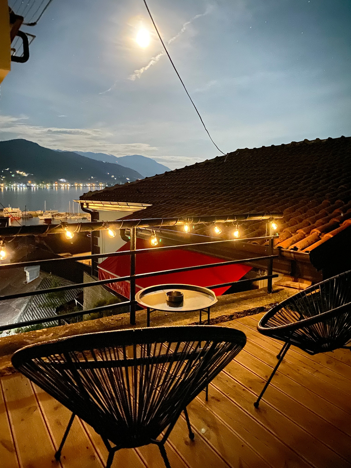 Located at the highest point of Pestani (Ohrid), the yours suite (second floor) offers a unique view of Lake Ohrid and mountain Galicica. Surrounded by greenery and an abundance of nature, you can enjoy on one of the 5 terraces overlooking the lake or the mountain, or simply sit in the garden by the fountain and listen to the sound of the river. In your de luxe suite you have 2 bedrooms, 1 living room, a full equipment kitchen, bathroom, toilet, closed terrace with fire p and huge green garden.