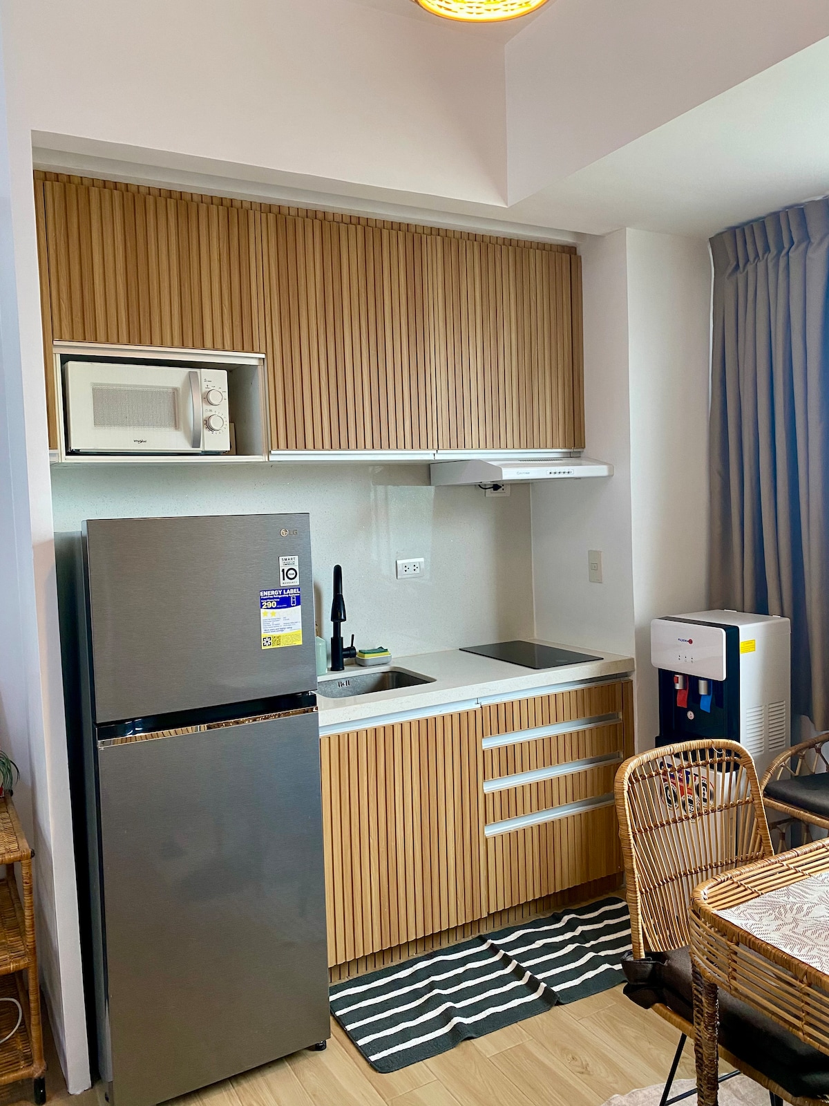 Kick back and relax in this calm, stylish studio unit near Mactan-Cebu International Airport! Inclusions: - Free access to the Pool and Gym - Towels and toiletries - Complimentary Coffee - Hairdryer - Clothes iron - Extra bed linens (upon request) - Wi-Fi About our space: - Pet-friendly - 32 sqm with a balcony facing the pool - Queen-sized bed with 2 bedside outlets - Work desk - Hot and cold shower - Dining area - Smart TV with Netflix - Wardrobe - Kitchen - Washing Machine