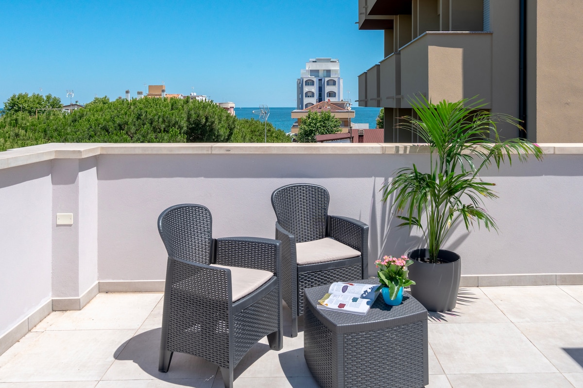 The Hotel Acquario is on the seafront right in front of the Torre Pedrera beach. The swimming pool opens on 23 May heated to 28° and always open from 9 am to 7.00 pm. From 7:30 a.m. to 11:00 a.m. a perfect breakfast wow awaits you (always included in the price). Services: Wifi, air conditioning, lift, Snackbar, reception h24, paid parking, washing machine, pushchairs, minibar. The room is available from 1 p.m. On the day of departure, the room will be available until 10 a.m.