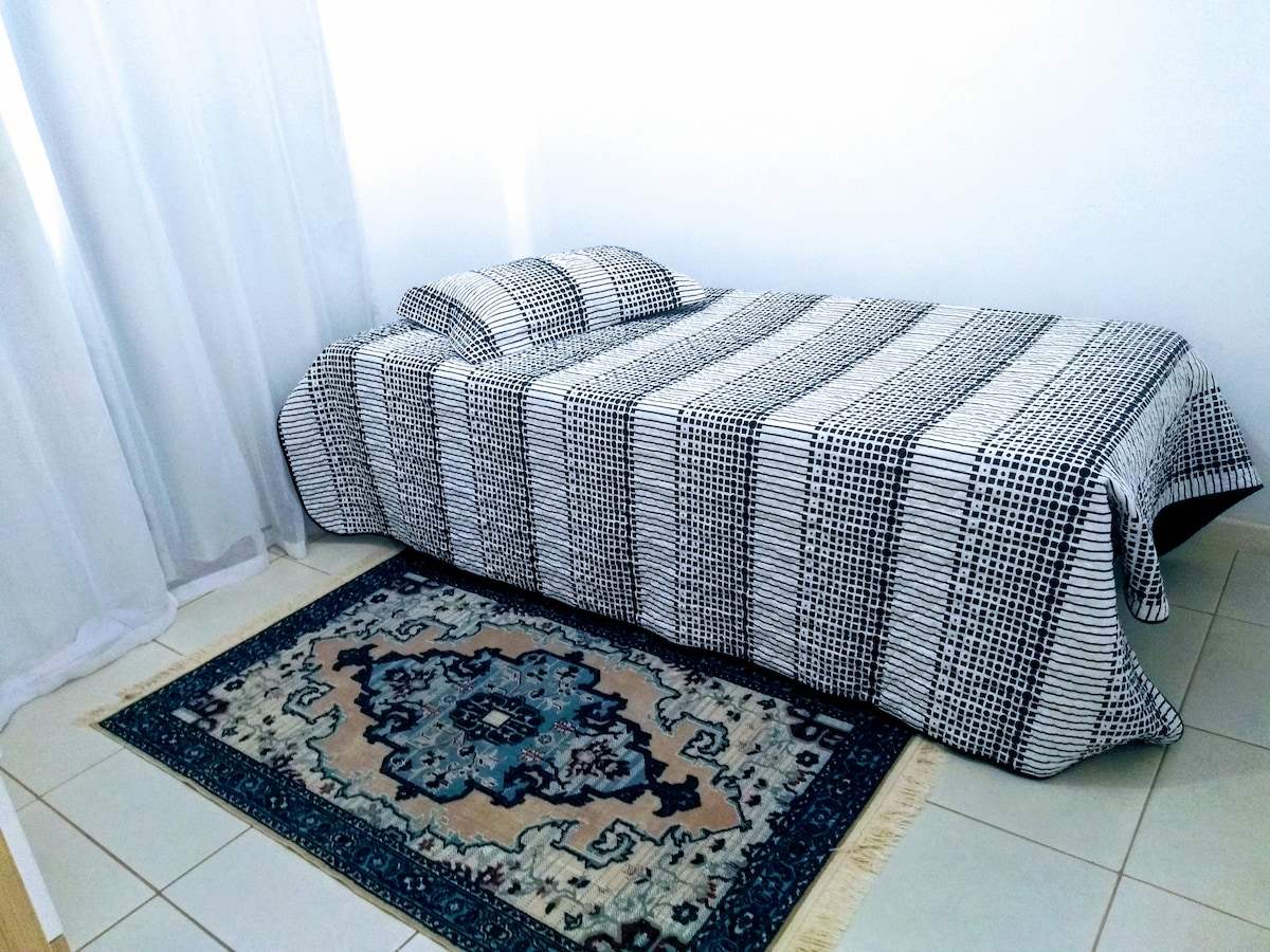 Χαλαρώστε σε αυτό το ήσυχο και ασφαλές μέρος σε μία από τις καλύτερες γειτονιές της πόλης, πολύ κοντά σε σούπερ μάρκετ, εστιατόριο, φαρμακείο, νοσοκομείο, εμπορικό κέντρο, αρτοποιείο και στο κέντρο της πόλης. Δωμάτια με κρεβάτι Box, ανεμιστήρα, πολυλειτουργικό, συρταριέρα. Διαθέσιμο δίκτυο Wi-Fi, πλήρης κουζίνα, φούρνος μικροκυμάτων, μπλέντερ, κατσαρόλες, ποτήρια, πιάτα, μαχαιροπίρουνα, ντουλάπι, φούρνος, ψυγείο, τραπέζι φαγητού, τηλεόραση, κοινόχρηστο μπάνιο, 24ωρη θυρωρεία με πλήρη ασφάλεια και ιδιωτικό χώρο στάθμευσης Δεχόμαστε μικρά κατοικίδια