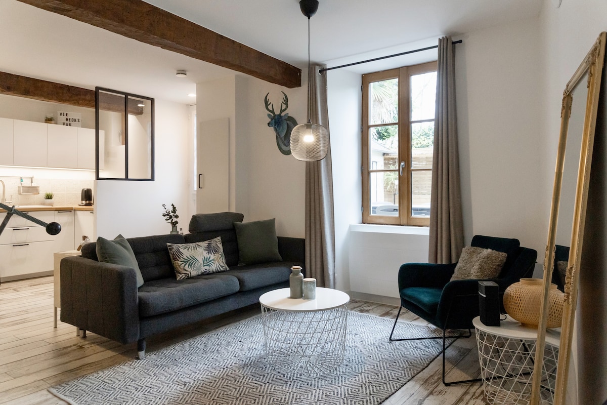 Détendez-vous dans ce spacieux logement confortable, calme et élégant. Située à proximité de tous commerces , la Grange des Paons a été rénovée récemment. Vous pourrez profiter de la piscine partagée avec les propriétaires et du parc . À 1 h de la montagne et 1 h30 de la mer , vous pourrez visiter les sites majeurs du Béarn ( châteaux, vignobles, .. ) , apprécier la gastronomie réputée du sud ouest où pratiquer des activités sportives et de pleine nature : randonnée , rafting, vélo