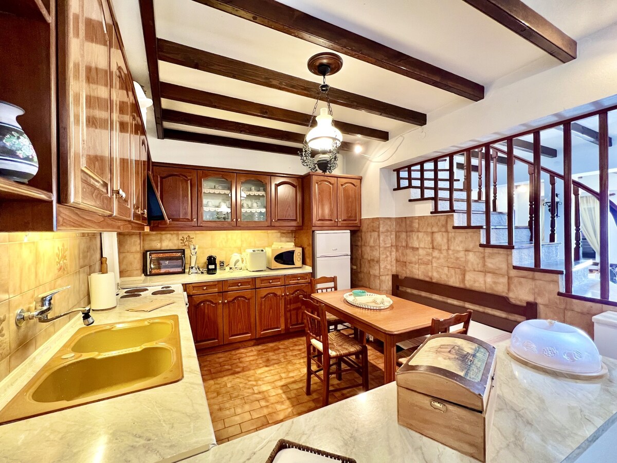 Picturesque sunny villa that offers visitors first class accommodations within its spacious 150m2 house which provides every comfort needed. Enjoy our beautiful and large swimming pool and breathtaking view. The house is surrounded by a beautiful garden rich in flowers and olive trees, which supplement the villa's image with colours and scents. The two-story building is indicative of traditional architecture while focusing on functionality and simplicity. The rooms are all very sunny with many openings. In the first floor there are two bedrooms with a bathroom between them (common) and queen size beds. In the ground floor there is one bedroom (queen size bed)with its own bathroom ,a living room with sofa and dining table and a smart kitchen .The kitchen is fully equipped with everything you might need to cook your own delicious meals. There is also another bedroom with two single beds and its own bathroom. All the bedrooms are air-conditioned. The outdoor area is a continuation of the living room and the kitchen,therefore it is very comfortable and functional .The adjacent outdoor sheltered dining table will make your meals more enjoyable. Therefore we invite you to breath in the fresh ionian sea air, swim in the crystal waters of Kalami,enjoy a great variety of sea sports,rent a boat and discover small beaches and if you like walking,take one of the seaside paths and discover hidden beauties.But if you prefer less action,relax by the pool and bask in the sun, rejoice in the colours of the sky during the sunset, enjoy your drink by watching the boats anchored in the bay and the lights of Corfu town. Your stay here will definitely be most memorable. All parts of the villa can be accessed by guests. The villa has a sheltered two car garage with room in the driveway for more. I or my co host will be there to welcome you on your arrival and show you the house. For any questions feel free to contact me. This coastal retreat is on the northeastern side of Corfu, 150m from Kalami beach, one of the most picturesque shorelines on the island with crystal waters, sun loungers and parasols. Beautiful Kouloura harbour is within walking distance. The villa is situated in Kalami bay, which is 30km from Corfu town. Getting around the island is possible either by bus transport(15 min.walking distance away from the villa there is a bus station for Corfu town),taxi or by renting a car.