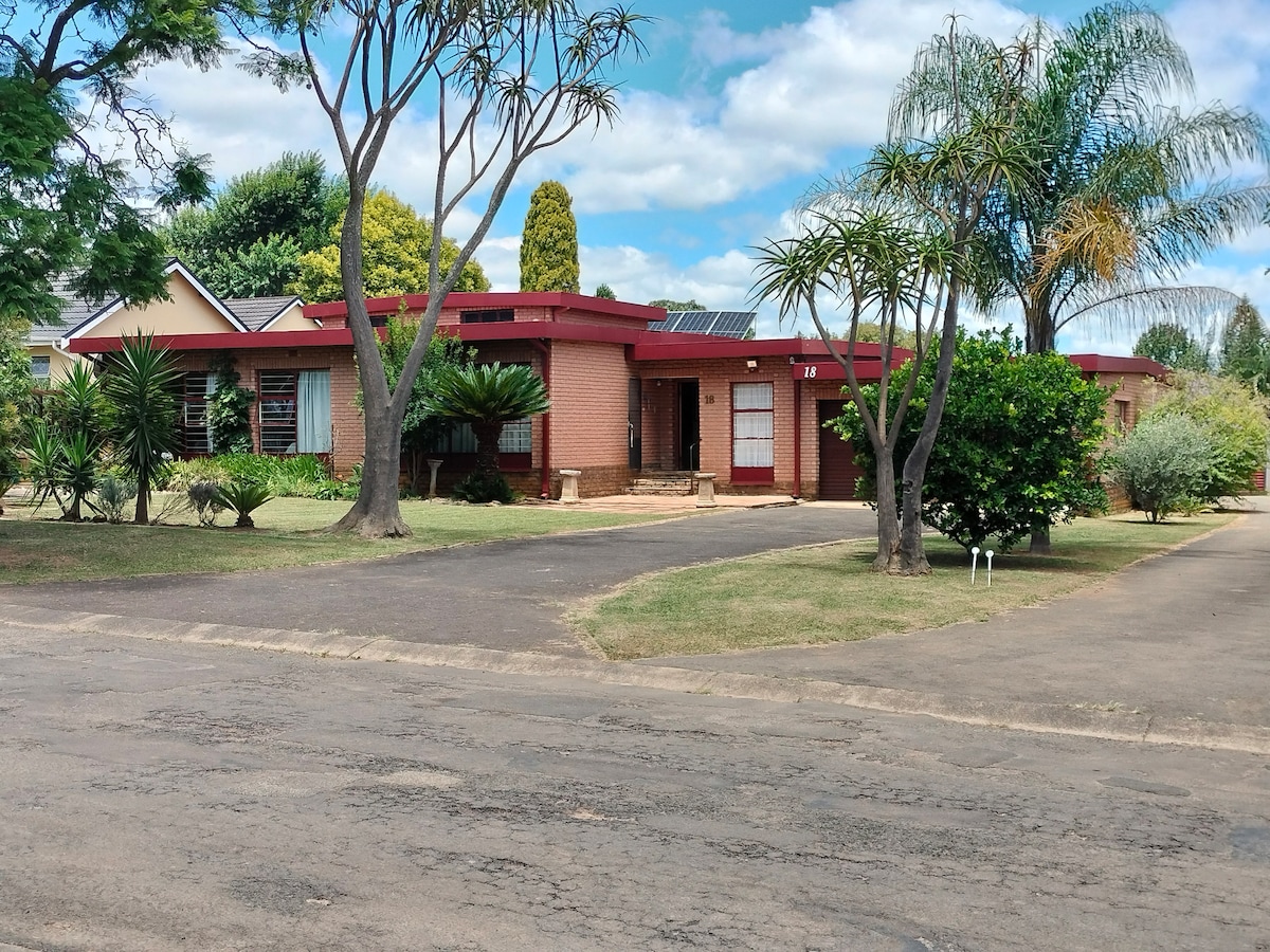 Nestled in a serene neighborhood in Vryheid, Webb's is a charming self-catering house featuring 2 bedrooms, with private entrance on the host's property. The main bedroom can accommodate up to 3 guests and the second bedroom can accommodate up to 2 guests comfortably. The open-plan layout includes a sleeping area, an en-suite bathroom, a TV with streaming services, minibar fridge, heat-and-eat facilities. Linen and towels are provided and Wi-Fi is available for guest's convenience.