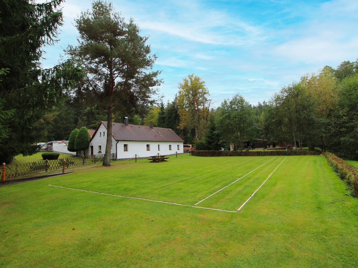 Ανεξάρτητο σπίτι μόλις λίγα μέτρα από την πίστα έλκηθρου στο Lipno nad Vltavou. Το σπίτι προσφέρει ευρύχωρα δωμάτια, για 12 - 14 άτομα, μεγάλη τραπεζαρία - κοινόχρηστο δωμάτιο, εξοπλισμένη κουζίνα που περιλαμβάνει φούρνο μικροκυμάτων και πλυντήριο πιάτων, ευρύχωρη βεράντα με μπάρμπεκιου, πέργκολα για παιδιά, θερμαινόμενη πισίνα με θαλασσινό νερό, μεγάλο κήπο, αίθουσα παιχνιδιών, Wii, netflix και WI-FI. Επαρκής χώρος για στάθμευση έως 5 αυτοκίνητα. Με τα πόδια 10 λεπτά από τη Μαρίνα της Λειψίας, το σούπερ μάρκετ και τους ανελκυστήρες σκι, 15 λεπτά από το μονοπάτι στις κορυφές των δέντρων.