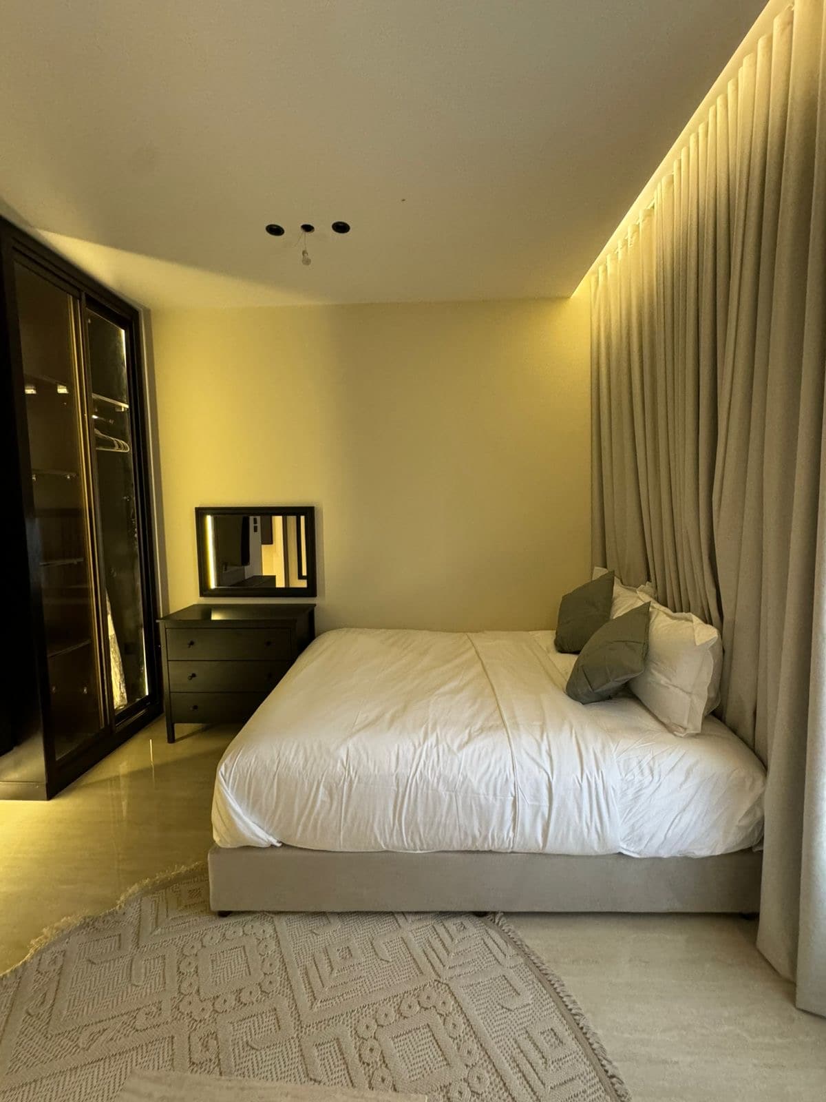 Αυτό το ήσυχο και κομψό κατάλυμα. Σχεδιασμένο με μοντέρνο και σύγχρονο στιλ, σας παρέχει όλα όσα χρειάζεστε για να ζήσετε με άνεση και πολυτέλεια. Το διαμέρισμα αποτελείται από ένα άνετο υπνοδωμάτιο και ένα ευρύχωρο σαλόνι, παρέχοντας τον ιδανικό χώρο για ξεκούραση και χαλάρωση μετά από μια κουραστική μέρα. Όπου μπορείτε να διαβάσετε βιβλία και να απολαύσετε ταινίες στο Netflix και κωδικοποιημένα και δωρεάν κανάλια, συμπεριλαμβανομένων όλων των αθλητικών καναλιών. Η τοποθεσία του καταλύματος προσφέρει επίσης εύκολη πρόσβαση σε διάφορες υπηρεσίες και εγκαταστάσεις.
