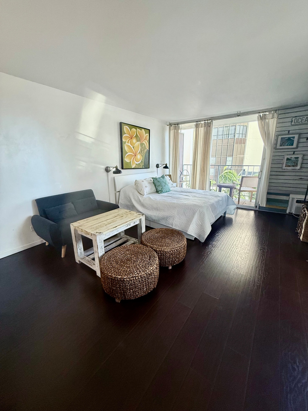 Stylish studio in the heart of Waikiki, with private lanai, spacious bedroom, fully equipped kitchenette, and premium access to Island Colony’s sun deck, pool, sauna, jet spa, BBQ, gym, and more!! Steps away from Kuhio Ave, with everything in walkable distance. Perfect for couple’s getaways, remote work, and family vacations! Under 7-minute walk to: ✔ Musubi & Bento IYASUME ✔ Marugame Udon ✔ Waikiki Beach ✔ Royal Hawaiian Center ✔ International Market Place