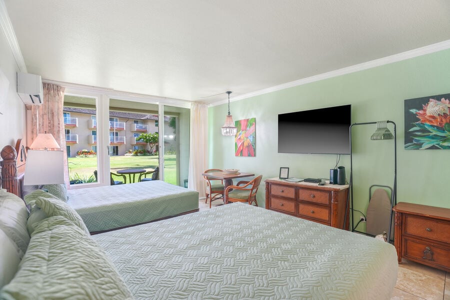 Όμορφο στούντιο στο ισόγειο #116 με μικρή κουζίνα στο Islander on the Beach. Λίγα βήματα από την παραλία! Εξαιρετική, ήσυχη τοποθεσία στο θέρετρο και έχει θέα στον ωκεανό από το μπαλκόνι. Το θέρετρο Islander on the Beach, Hawaiian Style βρίσκεται σε έξι στρέμματα ακινήτων μπροστά στον ωκεανό με πλούσιο τοπίο, πισίνα, αμμώδη παραλία και πολλά άλλα. Κοντά σε καταστήματα/εστιατόρια. Η κεντρική του τοποθεσία παρέχει εύκολη πρόσβαση σε πολλά αξιοθέατα σε όλο το Καουάι. ΧΩΡΊΣ ΤΕΛΗΡΕΤΡΙΚΉ ΧΡΈΩΣΗ/ΔΩΡΕΆΝ ΣΤΆΘΜΕΥΣΗ