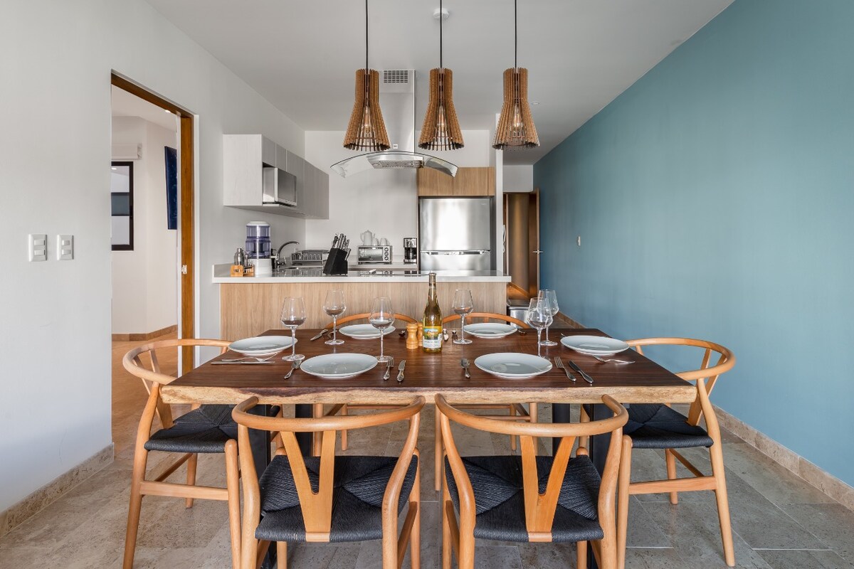 Πολυτελές διαμέρισμα στην Playa del Carmen, σε μικρή απόσταση με τα πόδια από την παραλία Mamitas και την Quinta Avenida. Σχεδιασμένη για άνεση και εκλεπτυσμένη παραθαλάσσια διαμονή, η κατοικία διαθέτει φωτεινούς εσωτερικούς χώρους, φινιρίσματα υψηλής ποιότητας, ντους οροφής σε στιλ σπα, ιδιωτικό μπαλκόνι με ήρεμη θέα στα μαγγρόβια δάση και γρήγορο Wi-Fi με ίνες. Οι επισκέπτες απολαμβάνουν ταράτσα με θέα στον ωκεανό, πισίνα, τζακούζι και γυμναστήριο, καθώς και ασφάλεια 24 ώρες το 24ωρο και άφιξη χωρίς παρουσία οικοδεσπότη. Ένα κομψό καταφύγιο κοντά σε κορυφαία εστιατόρια, καταστήματα, πολιτισμό και νυχτερινή ζωή.
