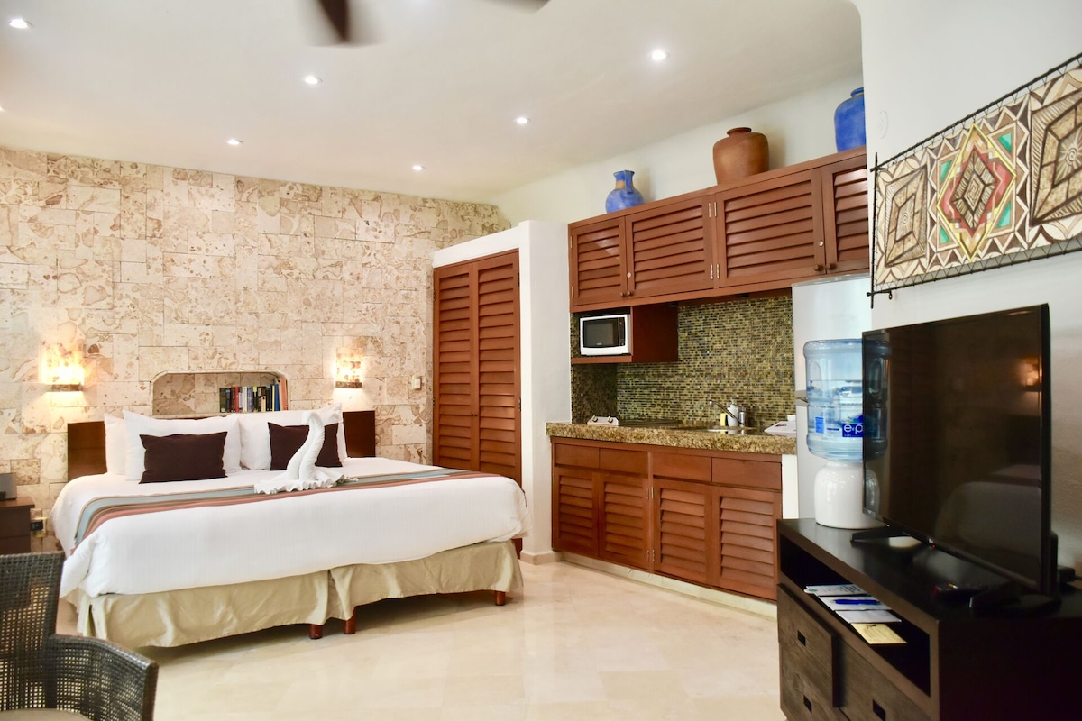 Αυτό το μοναδικό κατάλυμα βρίσκεται σε μια πολυκατοικία με την καλύτερη τοποθεσία στην Playa Del Carmen, σε μικρή απόσταση με τα πόδια από την 5η Λεωφόρο, σούπερ μάρκετ, εστιατόρια και όλα όσα θα χρειαστείτε για αξέχαστες διακοπές. Το διαμέρισμα περιλαμβάνει 1 ευρύχωρο υπνοδωμάτιο με υπέρδιπλο κρεβάτι, σαλόνι με αμερικανική κουζίνα, βεράντα στον επάνω όροφο με σολάριουμ και ιδιωτική πισίνα. Το συγκρότημα διαθέτει ρεσεψιόν, 2 πισίνες, γυμναστήριο, σάουνα, χώρο στάθμευσης, ασφαλή πρόσβαση.