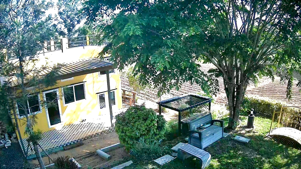 Αποδράστε σε αυτό το άνετο αγροτόσπιτο στο βουνό Khao Yai Tieng! Μια τέλεια ατμόσφαιρα φάρμας για 8 έως 10 επισκέπτες, που προσφέρει ένα μεγάλο σπίτι και ένα μικροσκοπικό σπίτι δίπλα-δίπλα. - Απολαύστε και χαλαρώστε στο σπίτι σας. -3 υπνοδωμάτια και 3 μπάνια -Rooftop with mountain views -Υπαίθριος χώρος και χώρος κατασκήνωσης. - Συγκομιδή λαχανικών για μαγείρεμα. - Απολαύστε τα πάρτι στο μακρύ τραπέζι. -65” τηλεόραση με PS4, Netflix και καραόκε