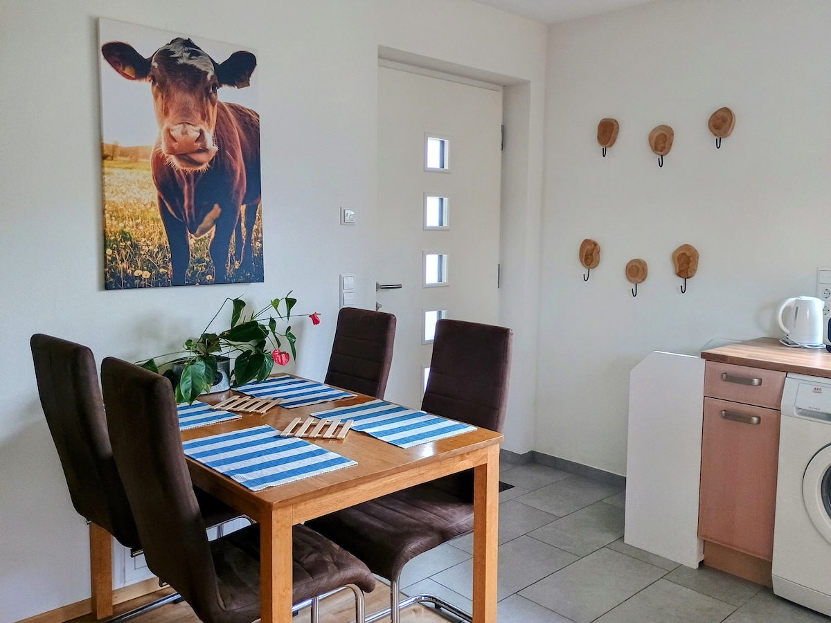 Προσφέρουμε έναν απλό, αλλά πλήρως εξοπλισμένο χώρο 44 τ.μ. για απλούς επισκέπτες στον πρώην, πρόσφατα ανακαινισμένο στάβλο μας. Η αυλή μας βρίσκεται σε ένα ήσυχο και όμορφο περιβάλλον. Διατηρούμε μια βιολογική γεωργία με αγελάδες, κοτόπουλα, άλογα και γάτες. Ο κήπος μας σας προσκαλεί να χαλαρώσετε και όταν βρέχει υπάρχει ένα στεγασμένο κάθισμα. Υπάρχει ένας καναπές-κρεβάτι για ένα παιδί, ενώ υπάρχει και χώρος για ένα ταξιδιωτικό κρεβάτι. Καλώς ήρθατε!